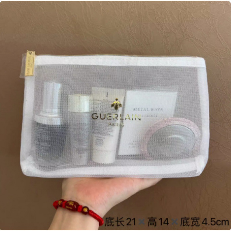 • 흰색 이중층 메쉬 신선한 세면도구 가방