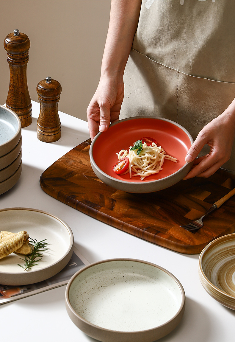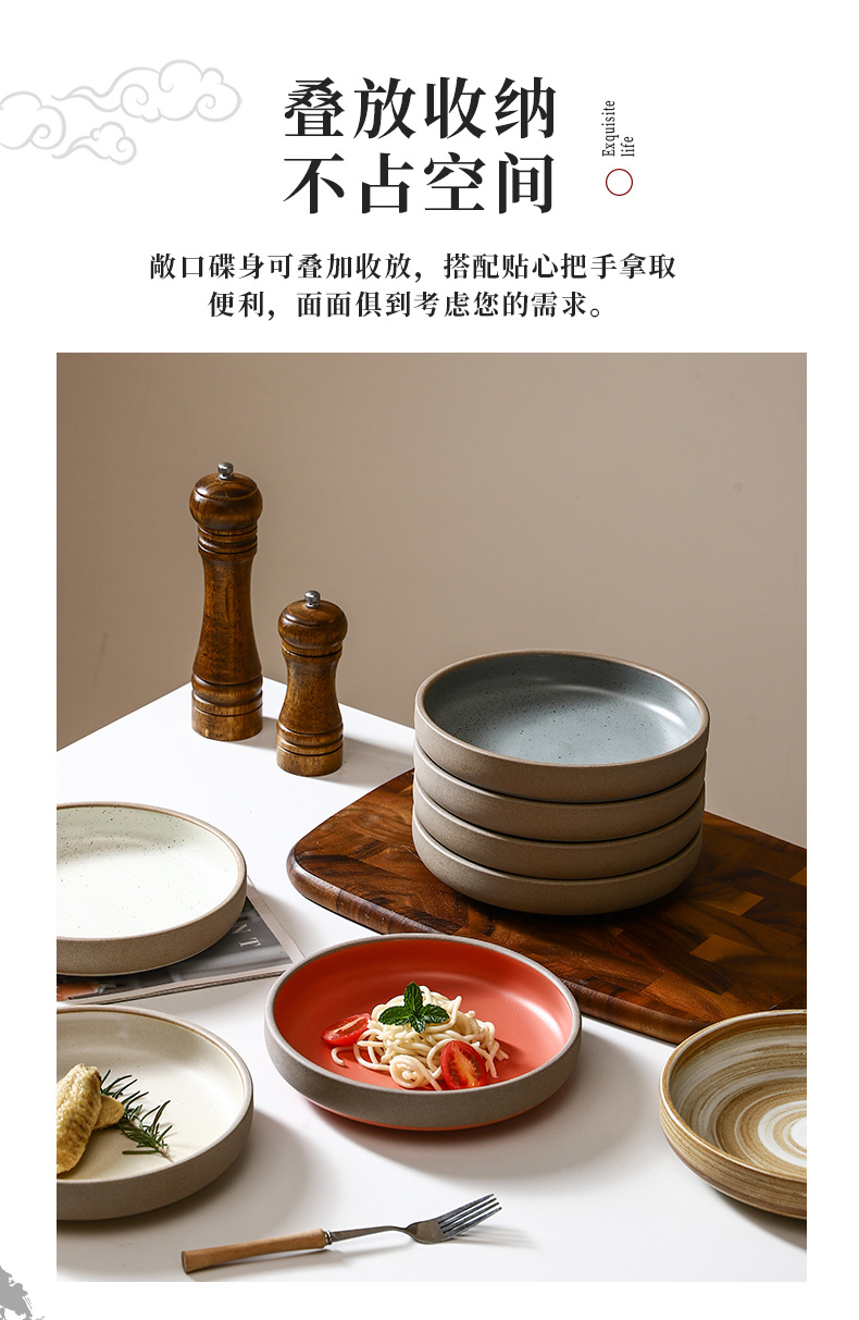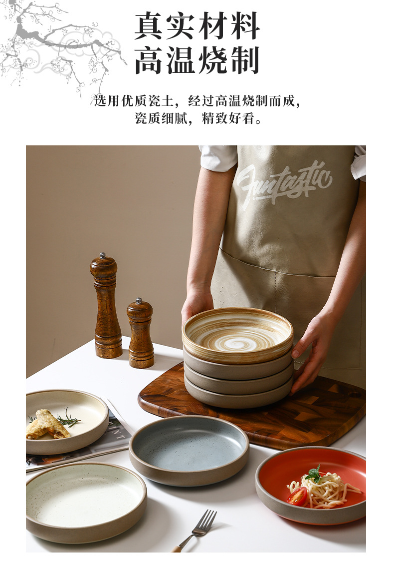 석기 간단한 디너 플레이트 가마 변화 딥 플레이트 레스토랑 수프 플레이트 고급 일본 세라믹 식기 북유럽 플레이트