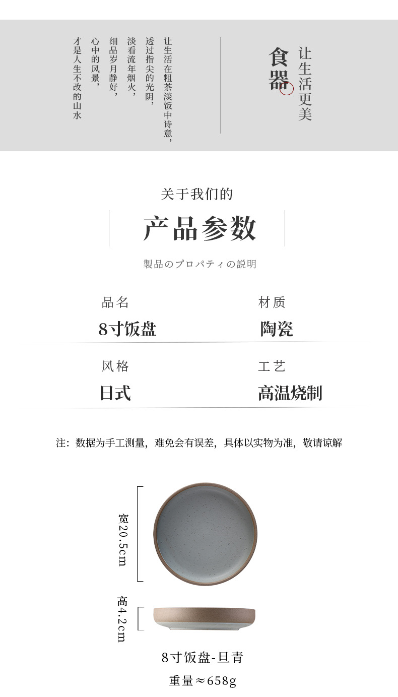 석기 간단한 디너 플레이트 가마 변화 딥 플레이트 레스토랑 수프 플레이트 고급 일본 세라믹 식기 북유럽 플레이트스토어 가기