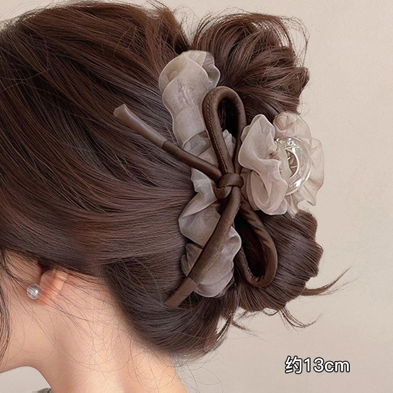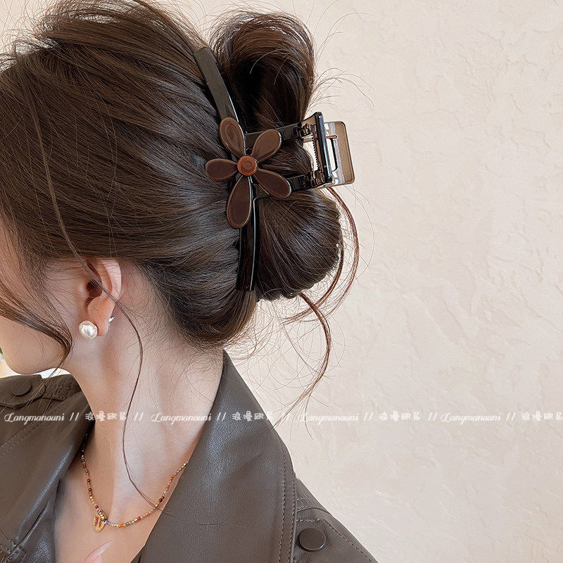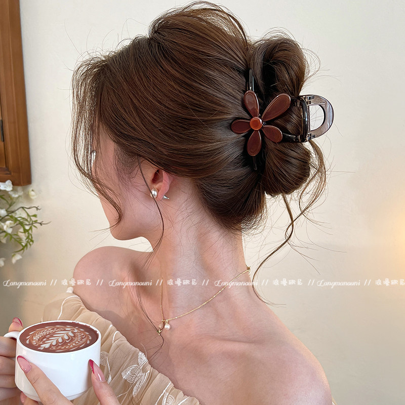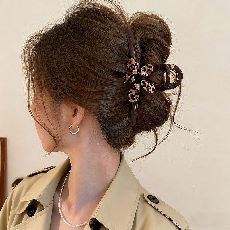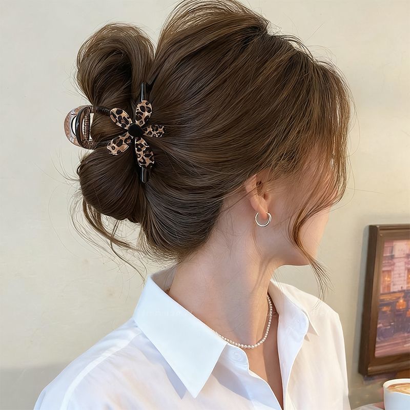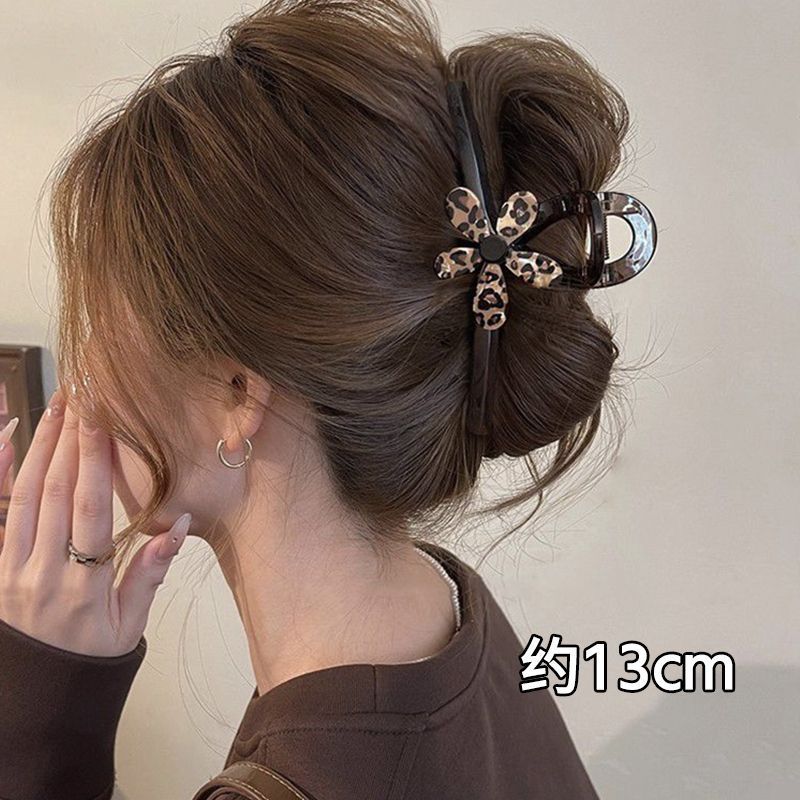 • 3#중형 [초콜릿 브라운 베이스 집게핀] 레오파드 플라워 집게핀 - 8cm