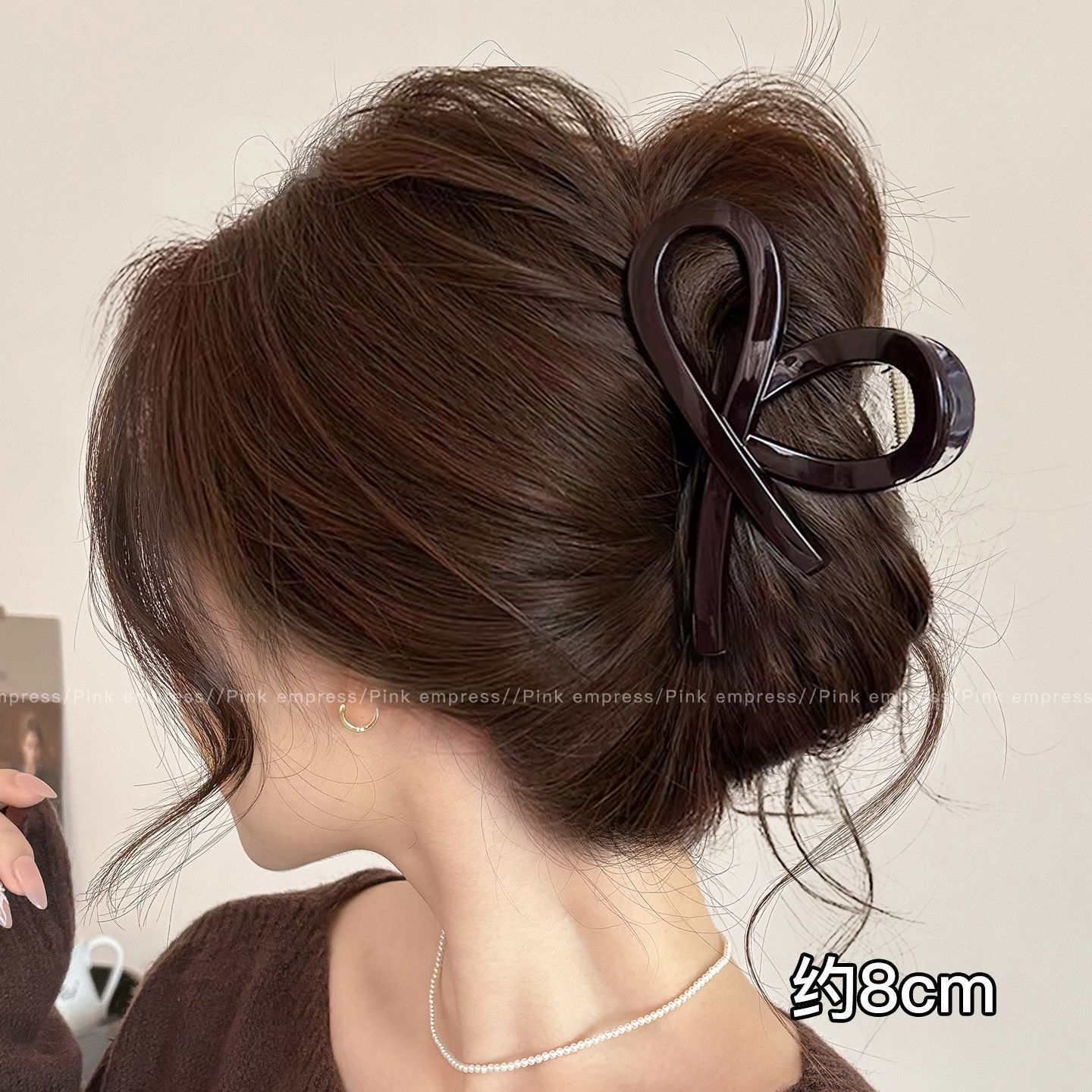 • 2#밀크티 컬러 나비 매듭 집게핀, 길이 약 8cm
