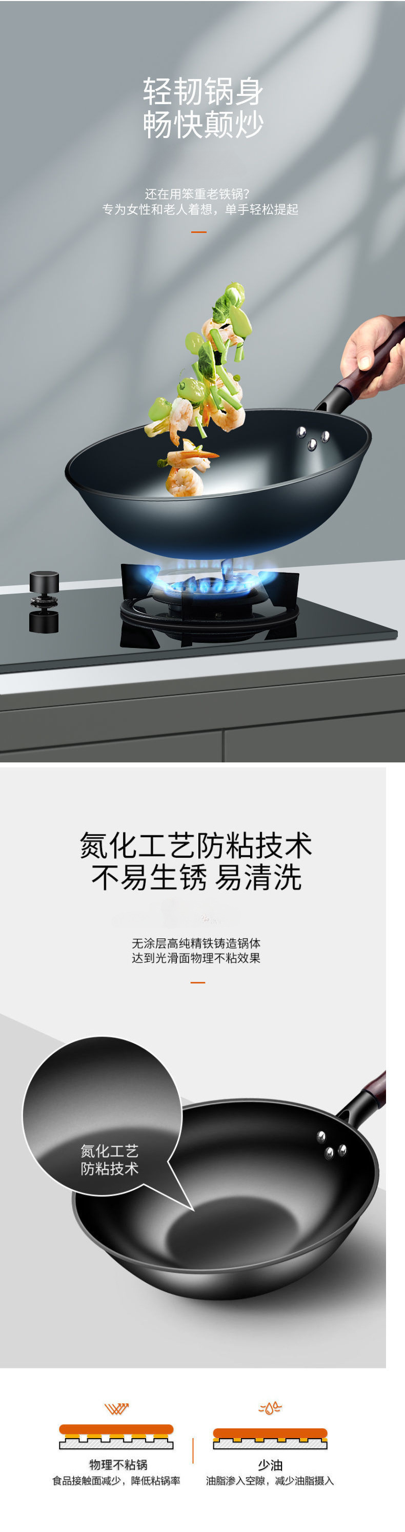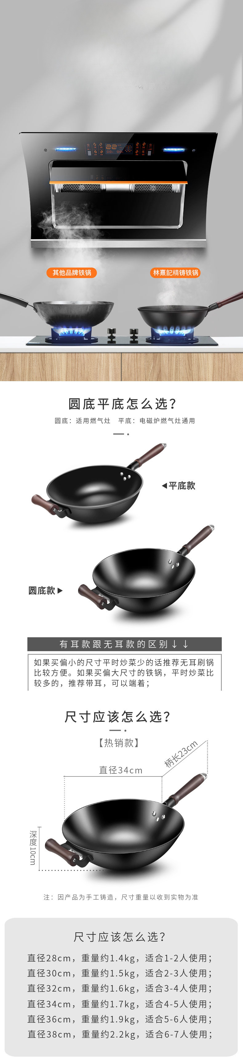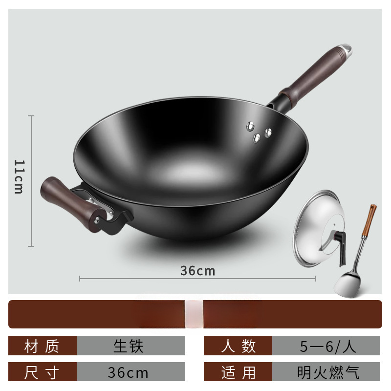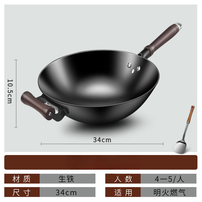 Iron Wok Wok 수제 구식 Wok 가정용 비 코팅 비 스틱 Wok 캐스트 아이언 워크 가스 스토브 용