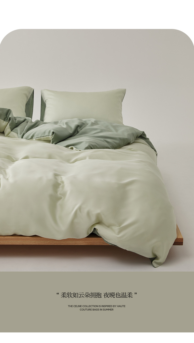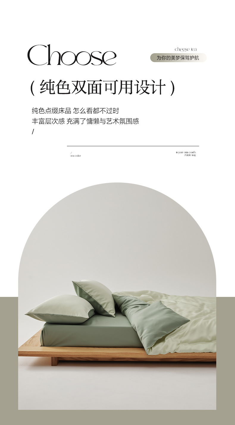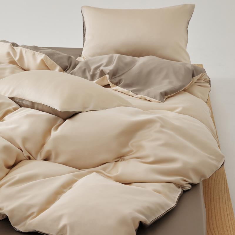 여름 시원한 Leisel 섬유 란징 텐셀 솔리드 컬러 더블 피스 4 피스 세트 아이스 실크 3 피스 세트 알몸 잠에 적합