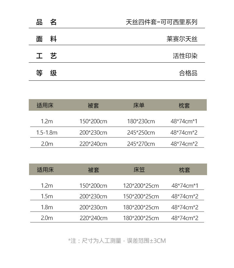• 1.5m 침대 [시트 4개 세트] - 200x230cm 이불심에 적합