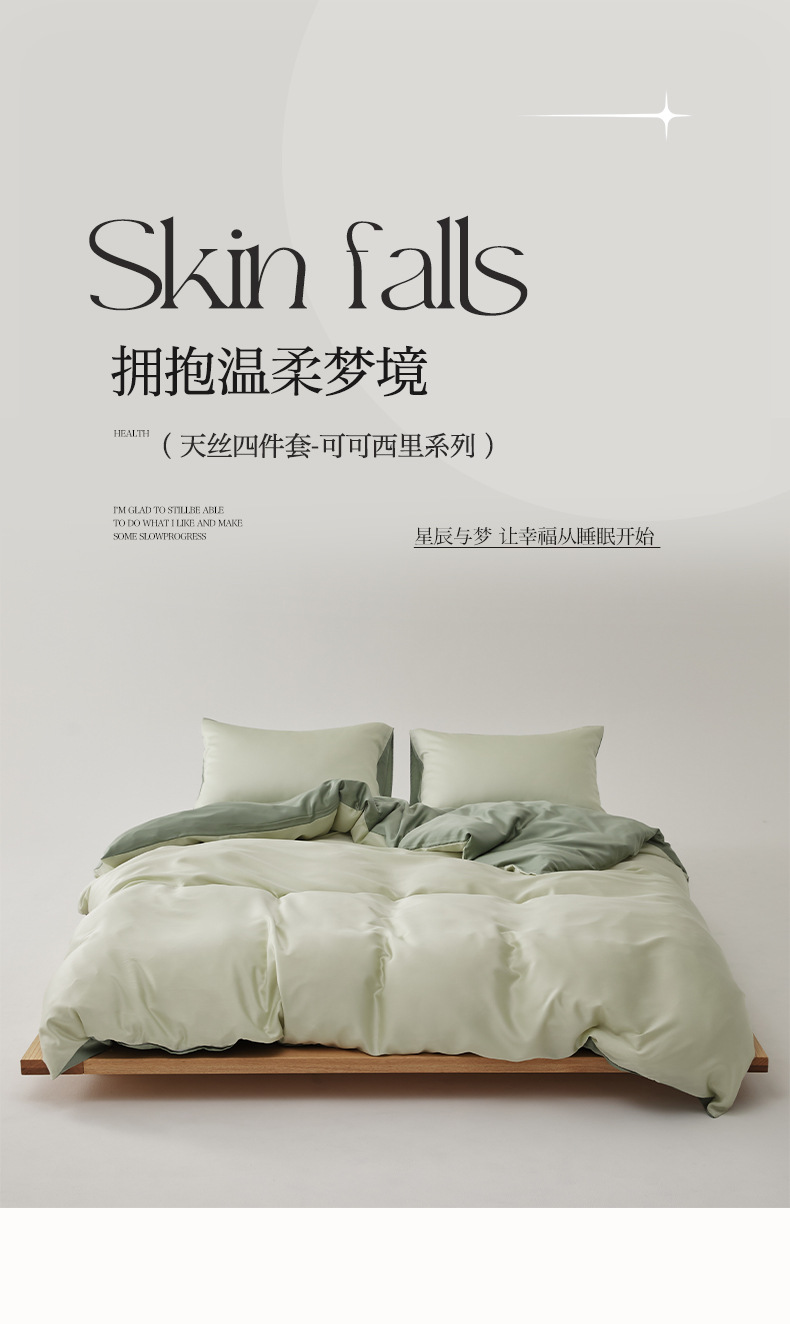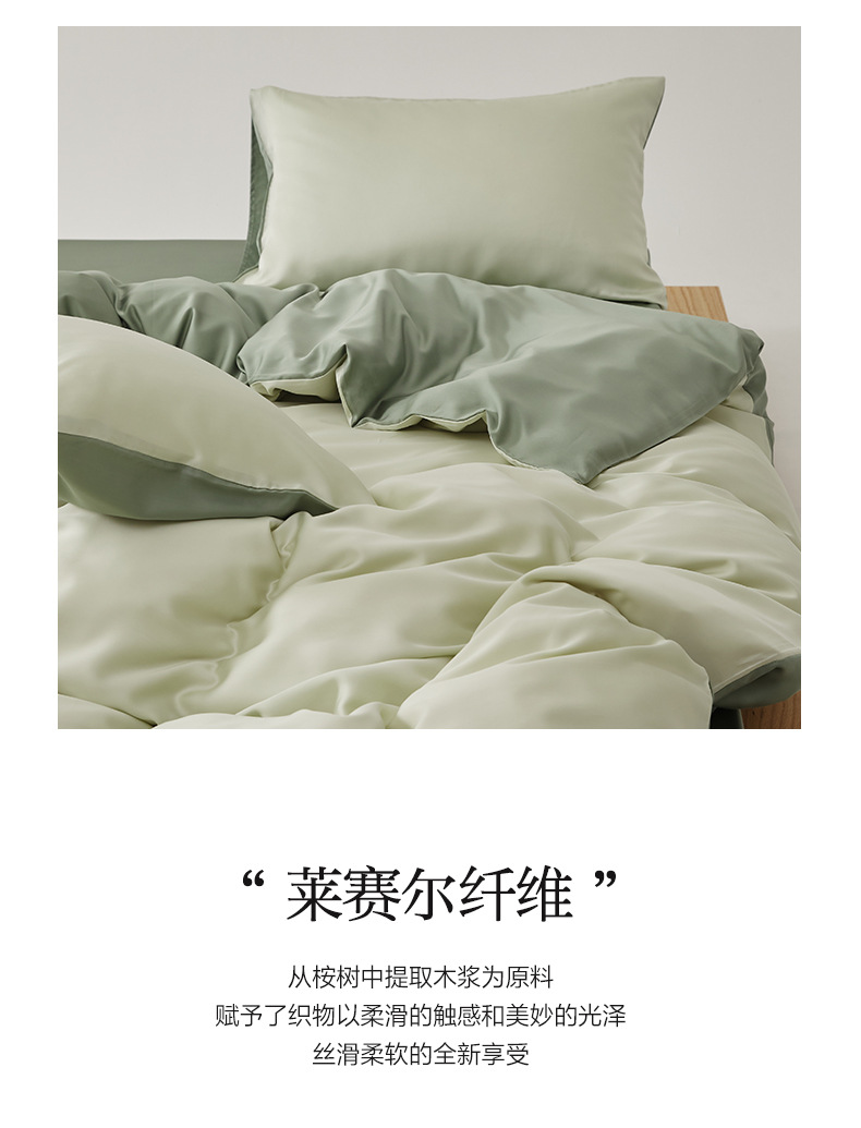 여름 시원한 Leisel 섬유 란징 텐셀 솔리드 컬러 더블 피스 4 피스 세트 아이스 실크 3 피스 세트 알몸 잠에 적합스토어 가기