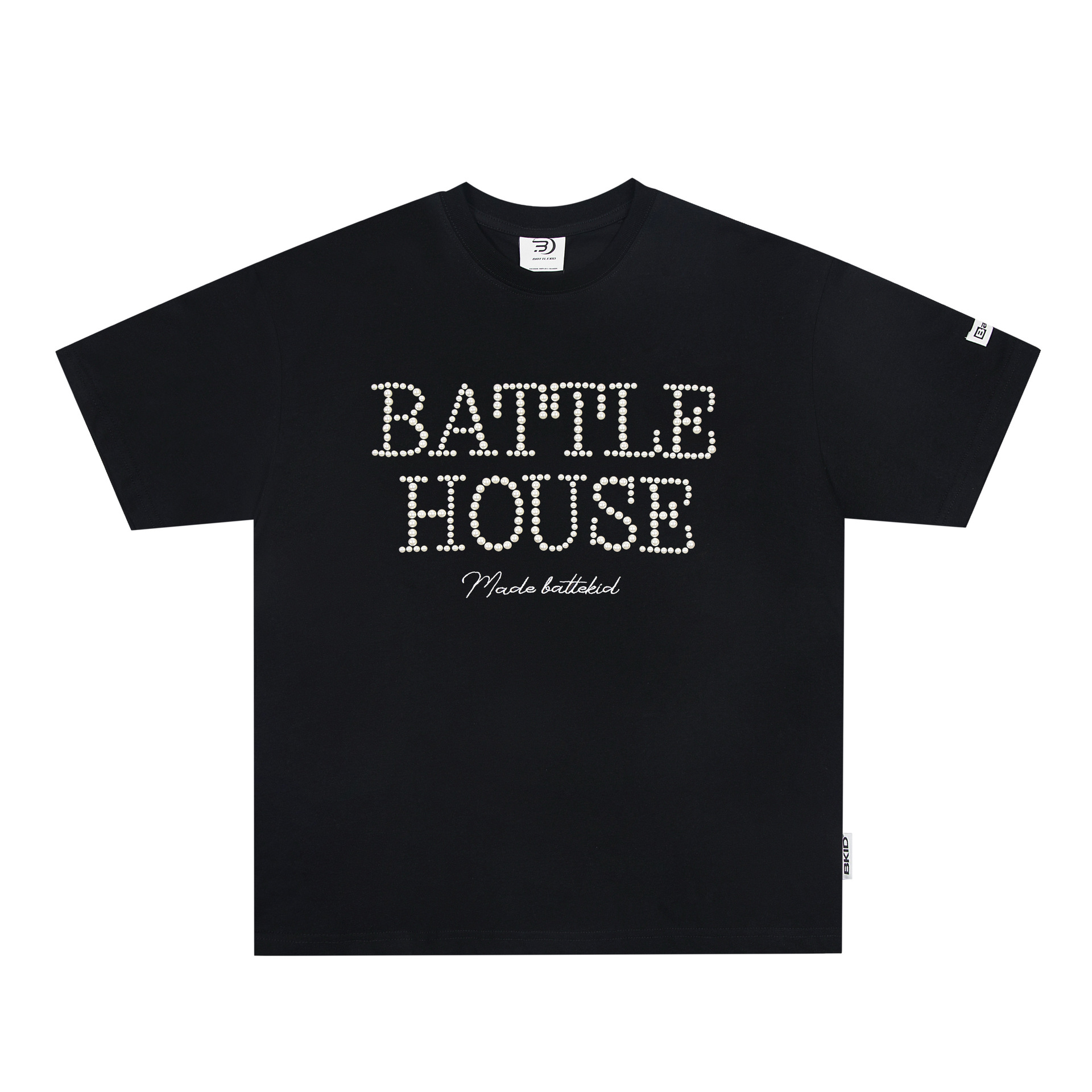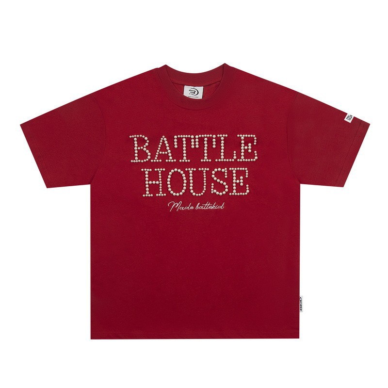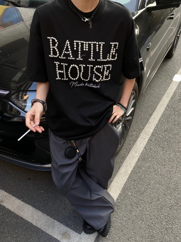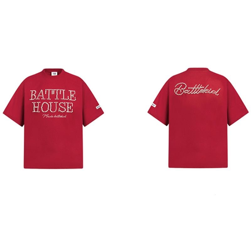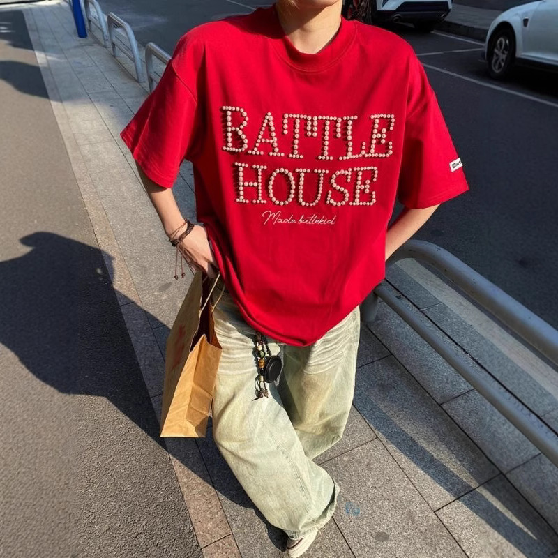 트렌디한 브랜드 디자인 비즈 레터링 반팔 티셔츠 남녀공용 아메리칸 스트리트 루즈 BF 스타일 커플 캐주얼 반팔 셔츠 T