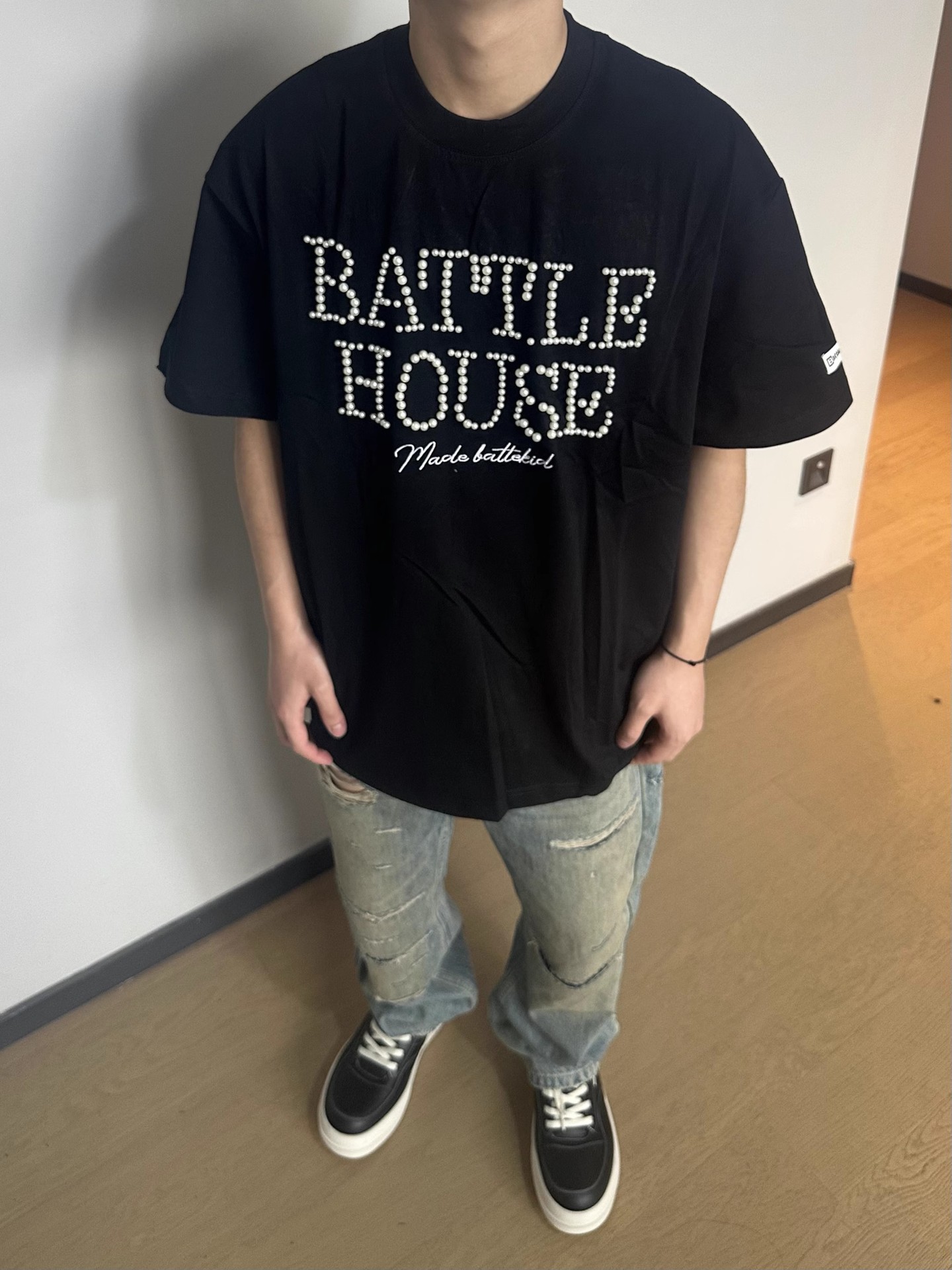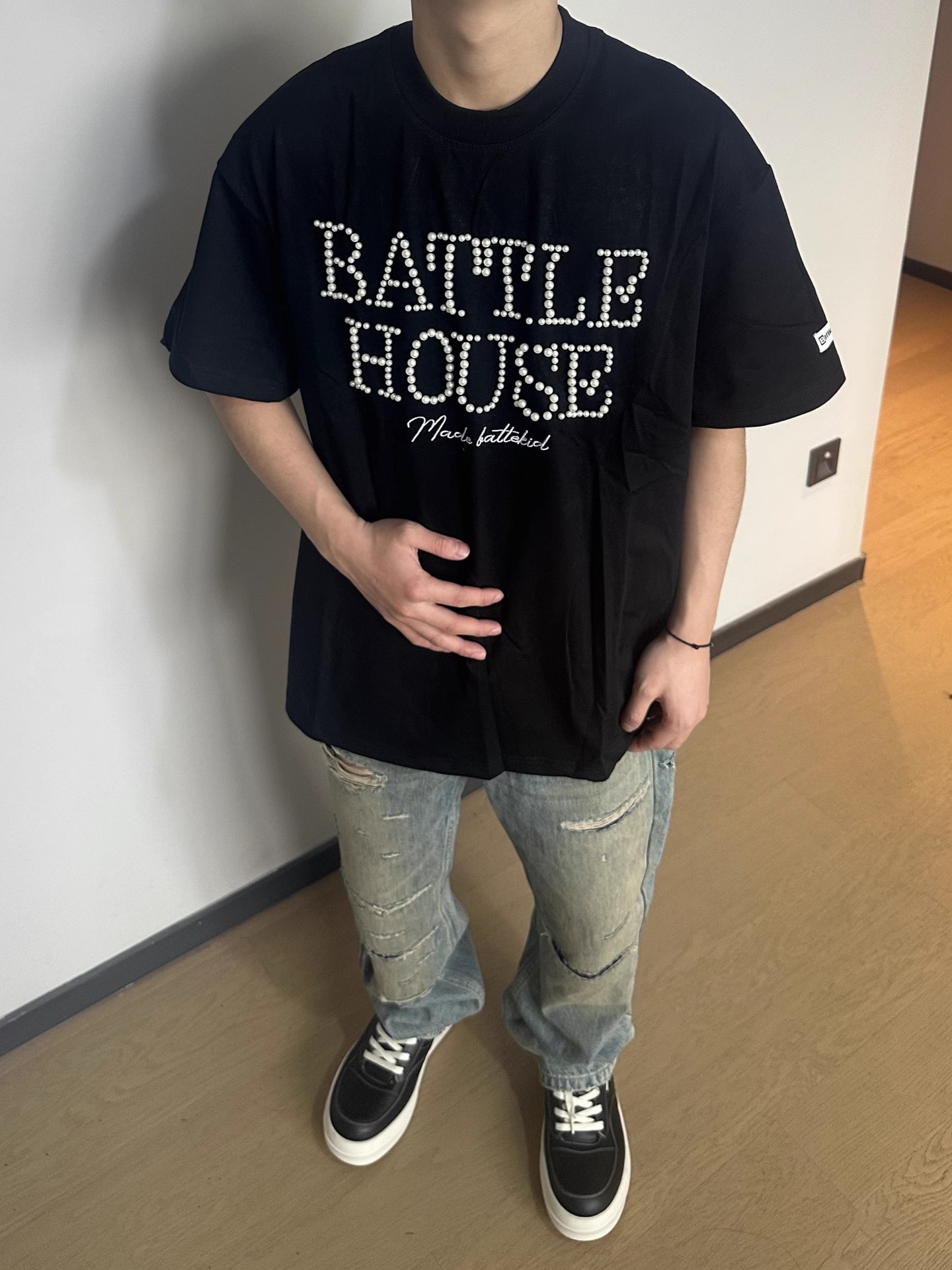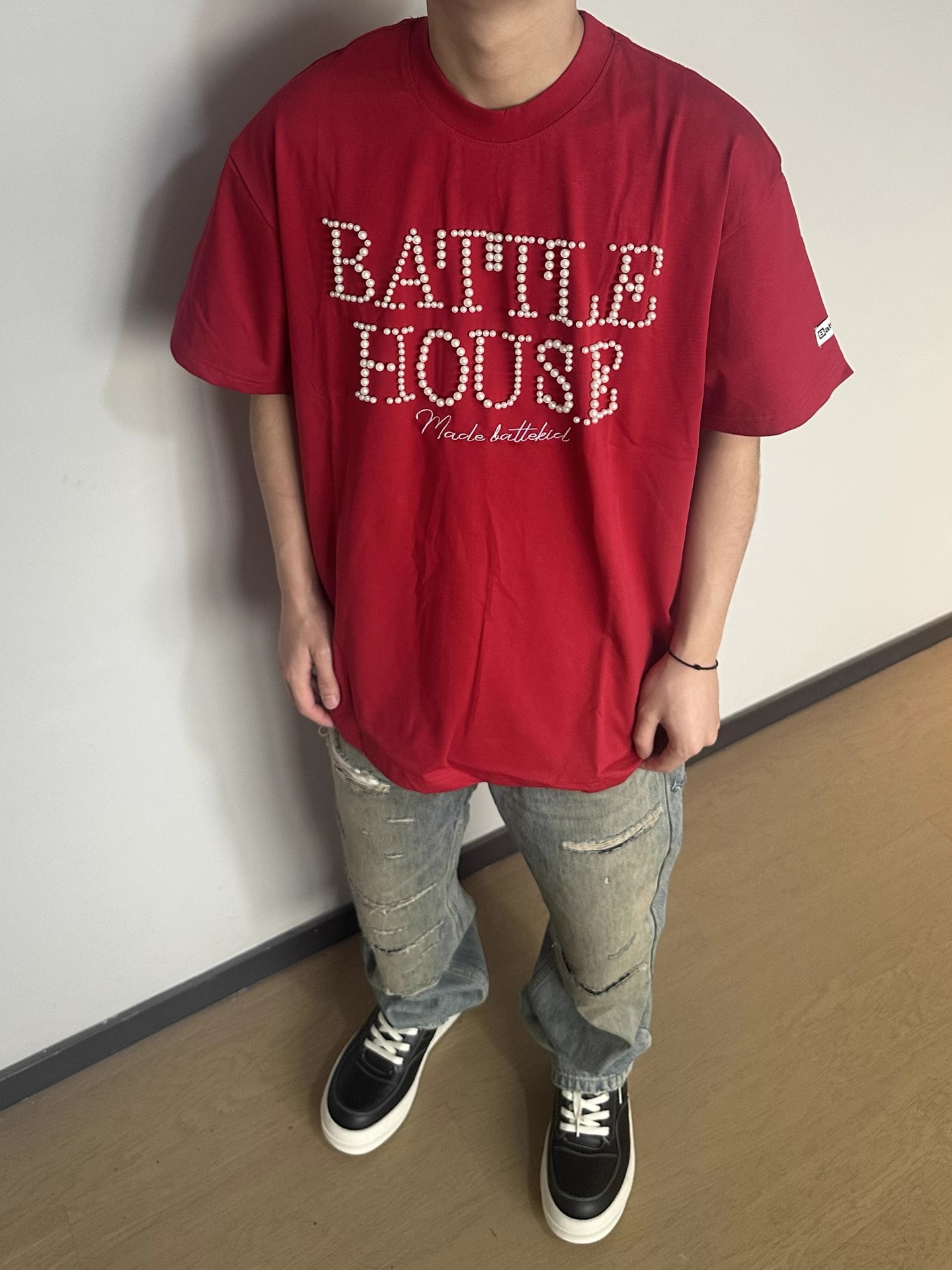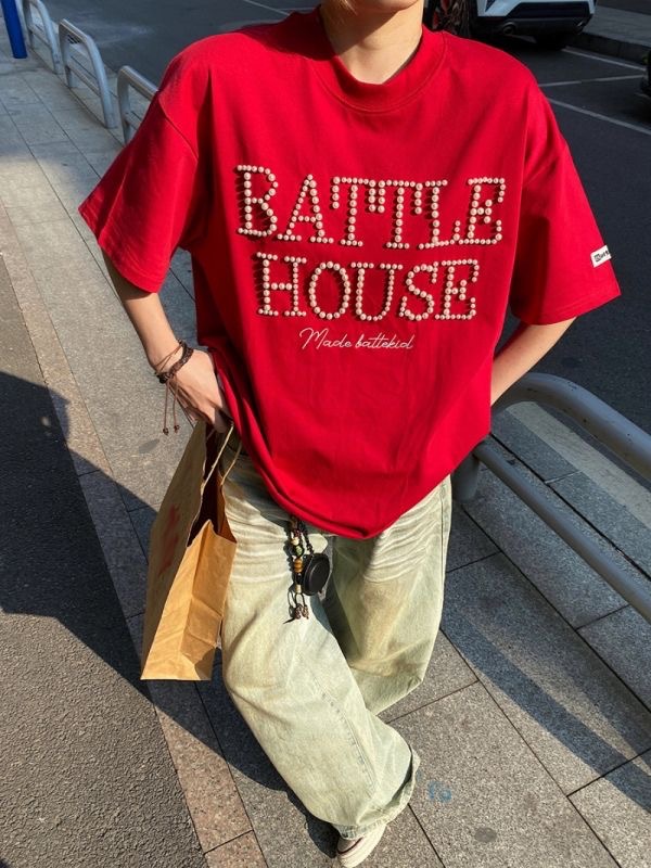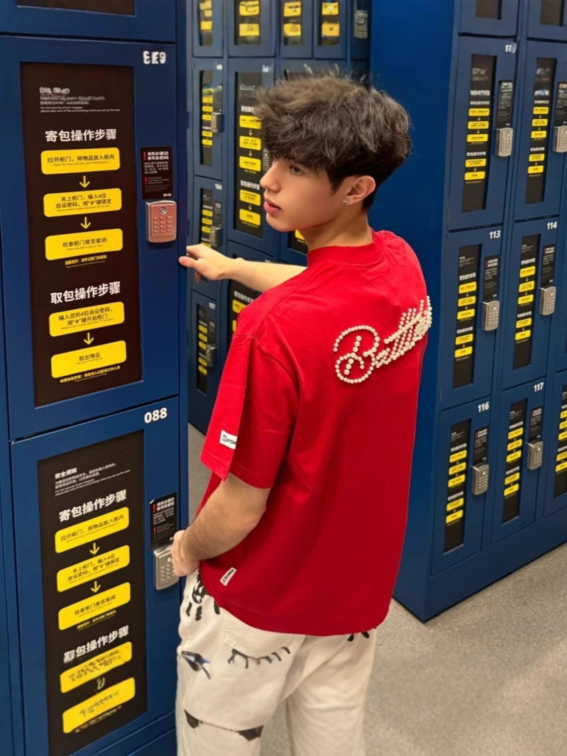 트렌디한 브랜드 디자인 비즈 레터링 반팔 티셔츠 남녀공용 아메리칸 스트리트 루즈 BF 스타일 커플 캐주얼 반팔 셔츠 T스토어 가기