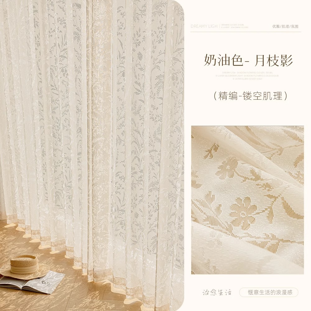 프렌치 스타일의 달빛 그림자 커튼, 크림톤 창문 커튼, 거울빛 커튼, 레이스 커튼, 거실, 발코니, 침실용 케이치아오 커튼