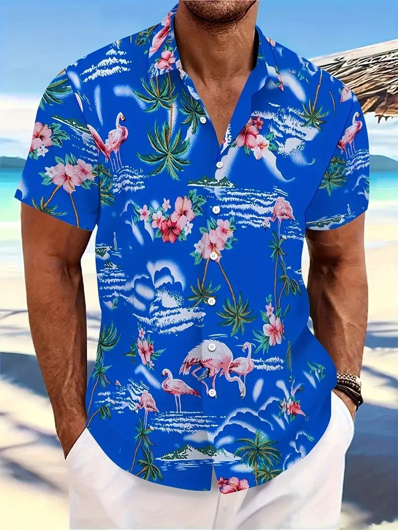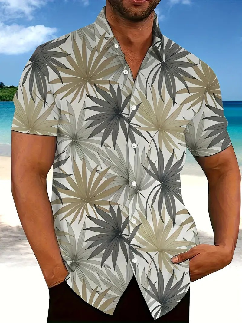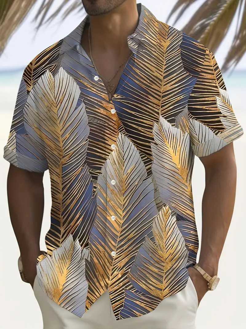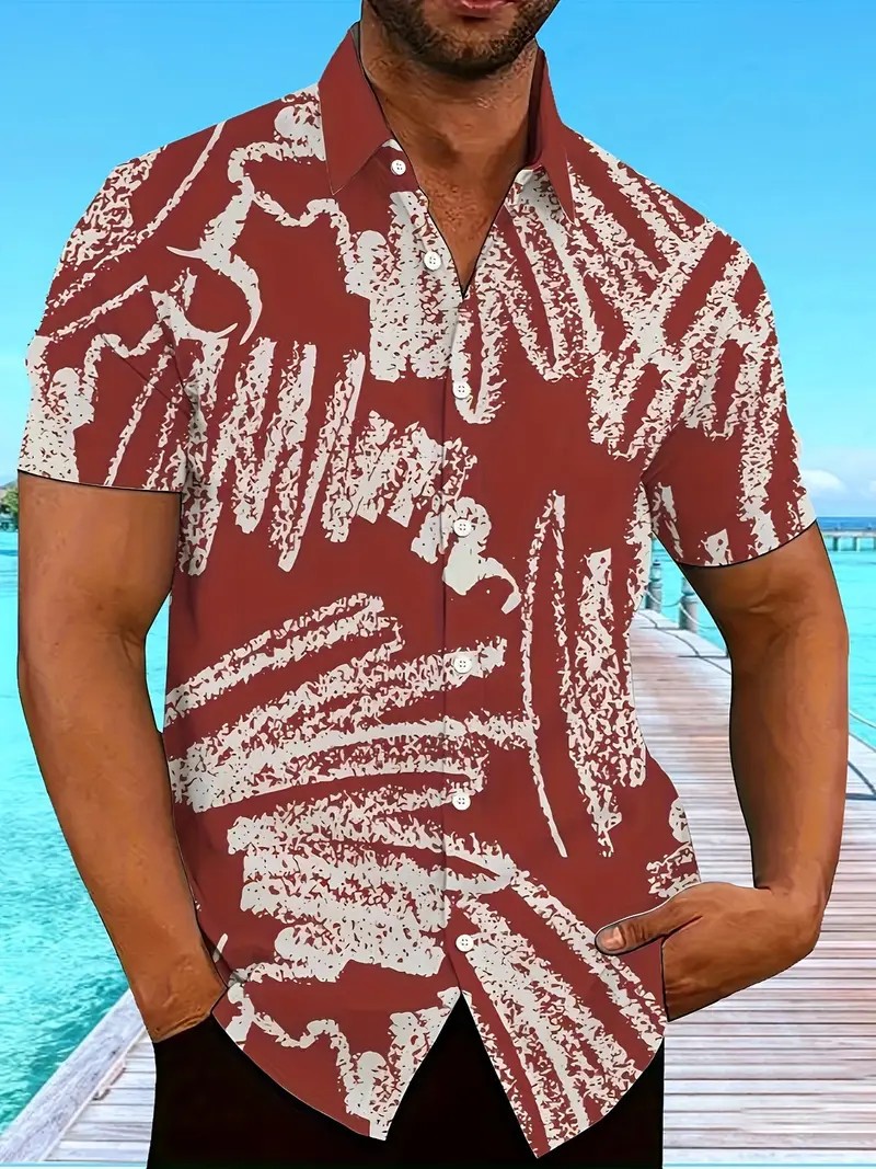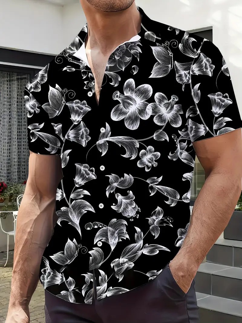 여름 새로운 패션 브랜드 잘 생긴 셔츠 남성 캐주얼 올 매치 프린트 옷깃 반팔 셔츠