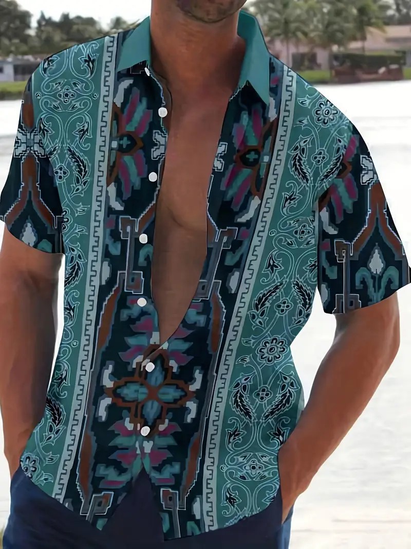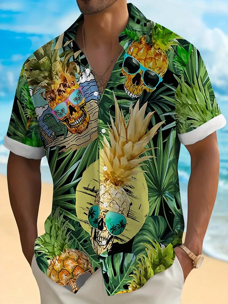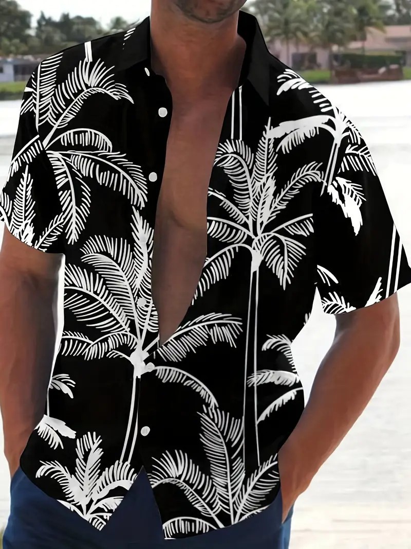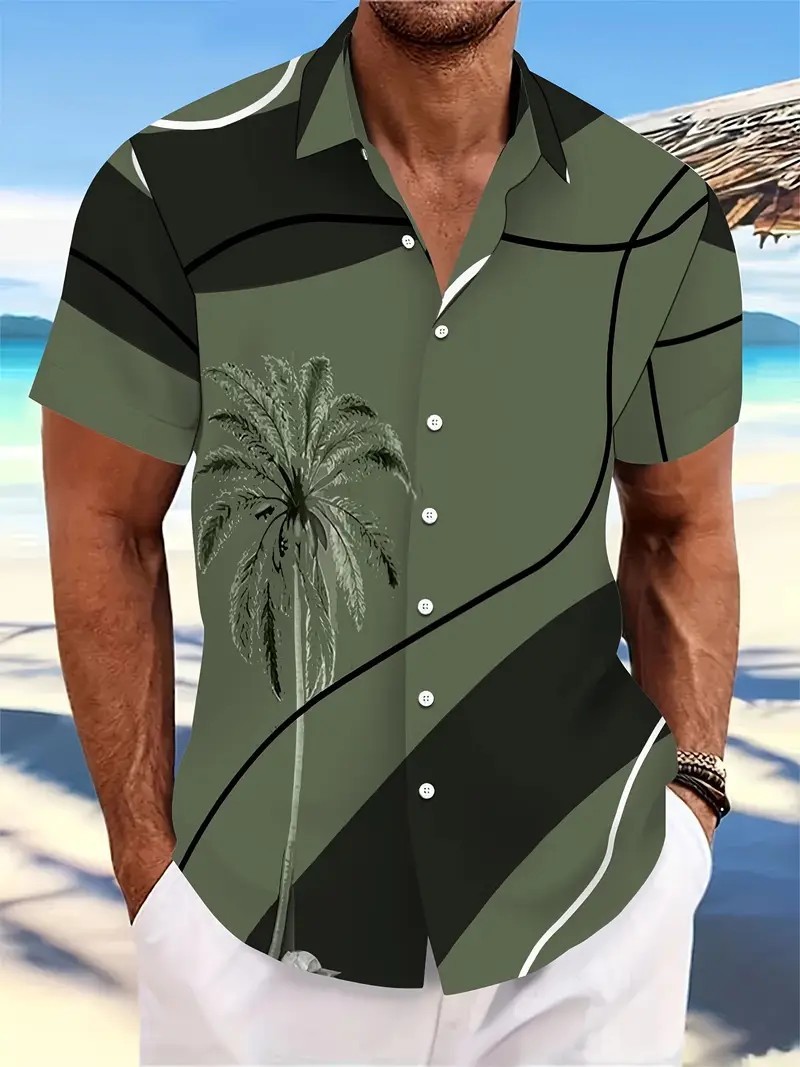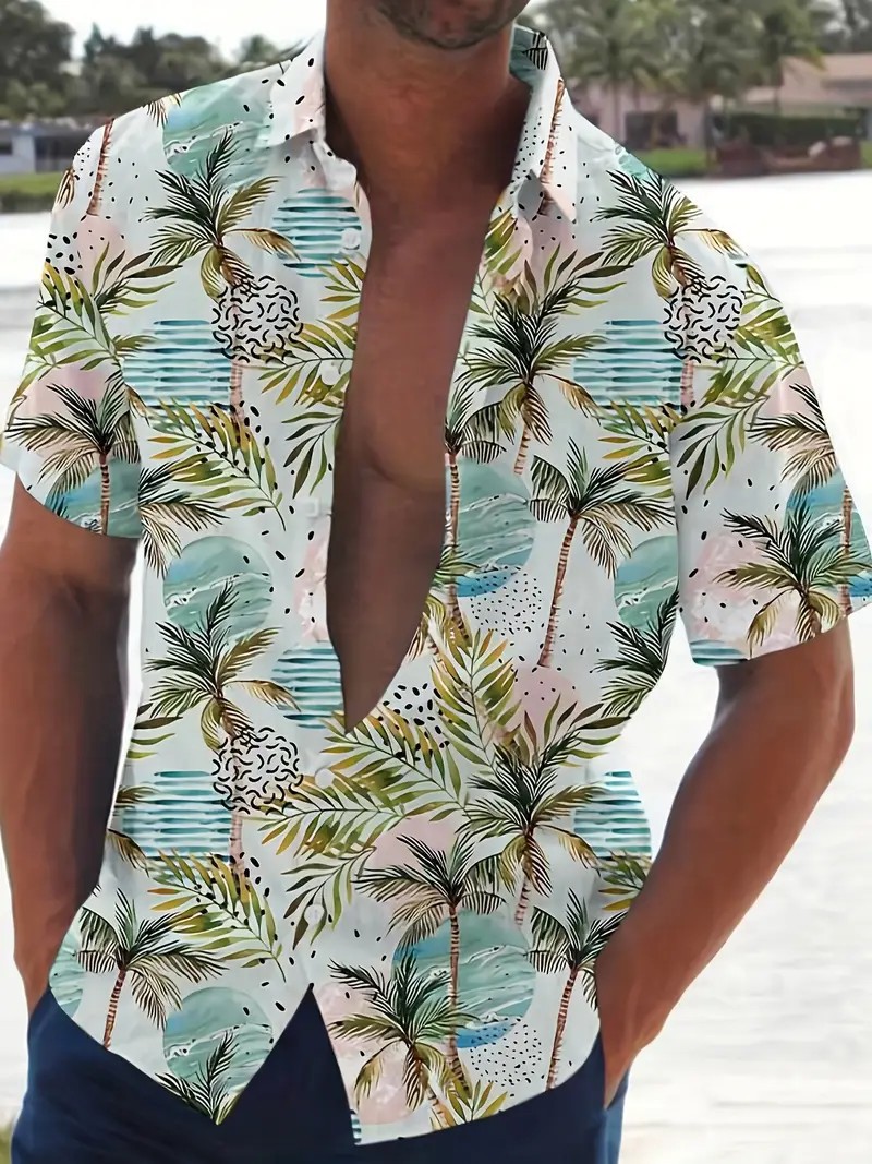 여름 새로운 패션 브랜드 잘 생긴 셔츠 남성 캐주얼 올 매치 프린트 옷깃 반팔 셔츠