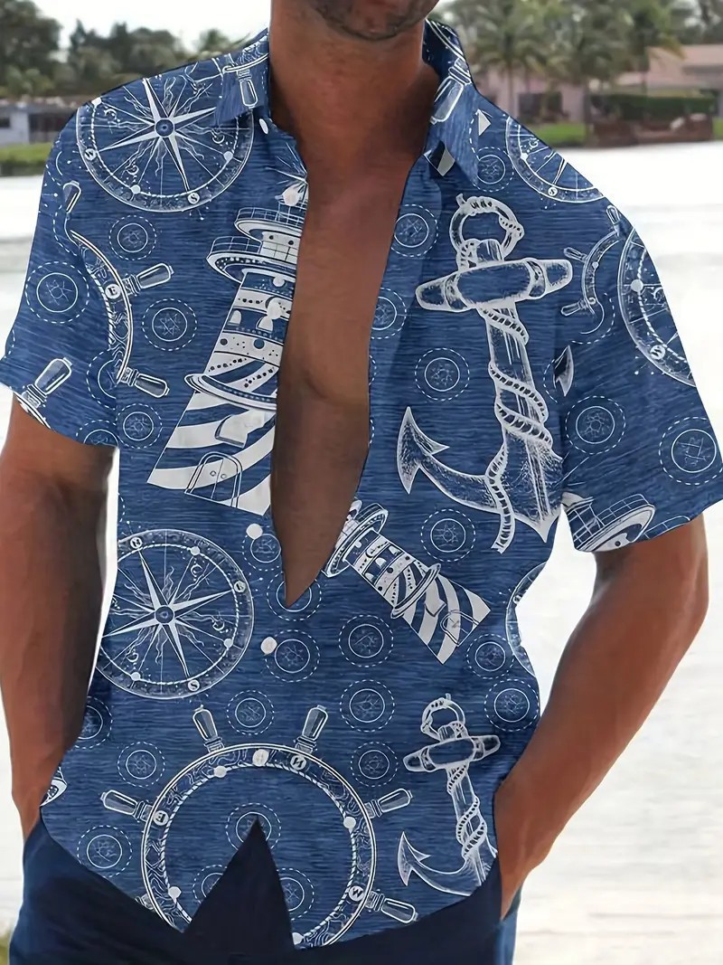 여름 새로운 패션 브랜드 잘 생긴 셔츠 남성 캐주얼 올 매치 프린트 옷깃 반팔 셔츠스토어 가기