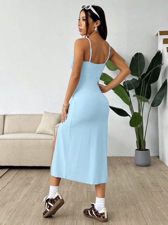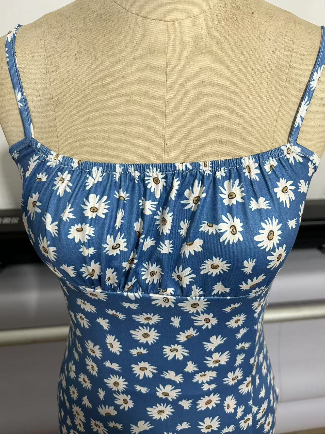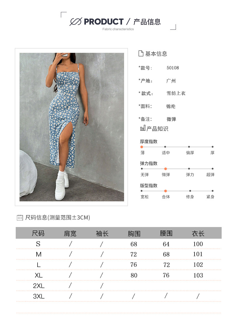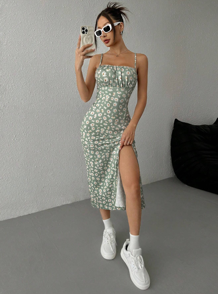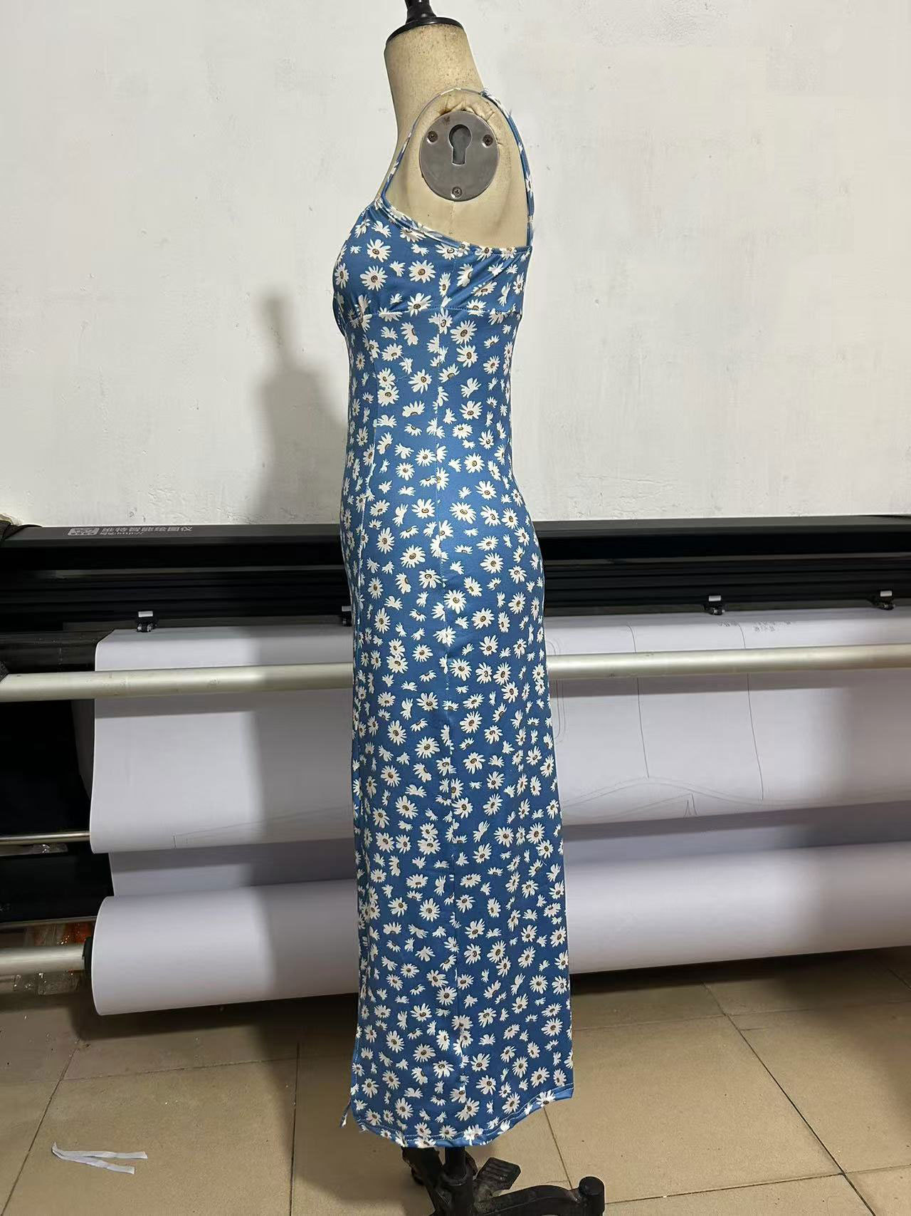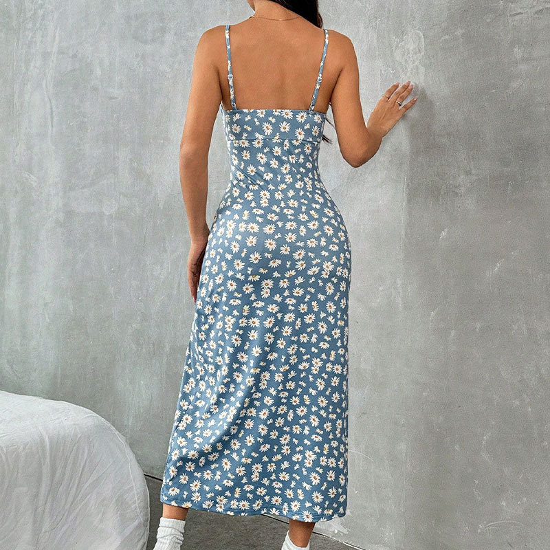 2025 대외 무역 새로운 아마존 봄과 여름 콘돌 스트랩 가슴 슬릿 작은 데이지 엉덩이 인쇄 원피스 여성