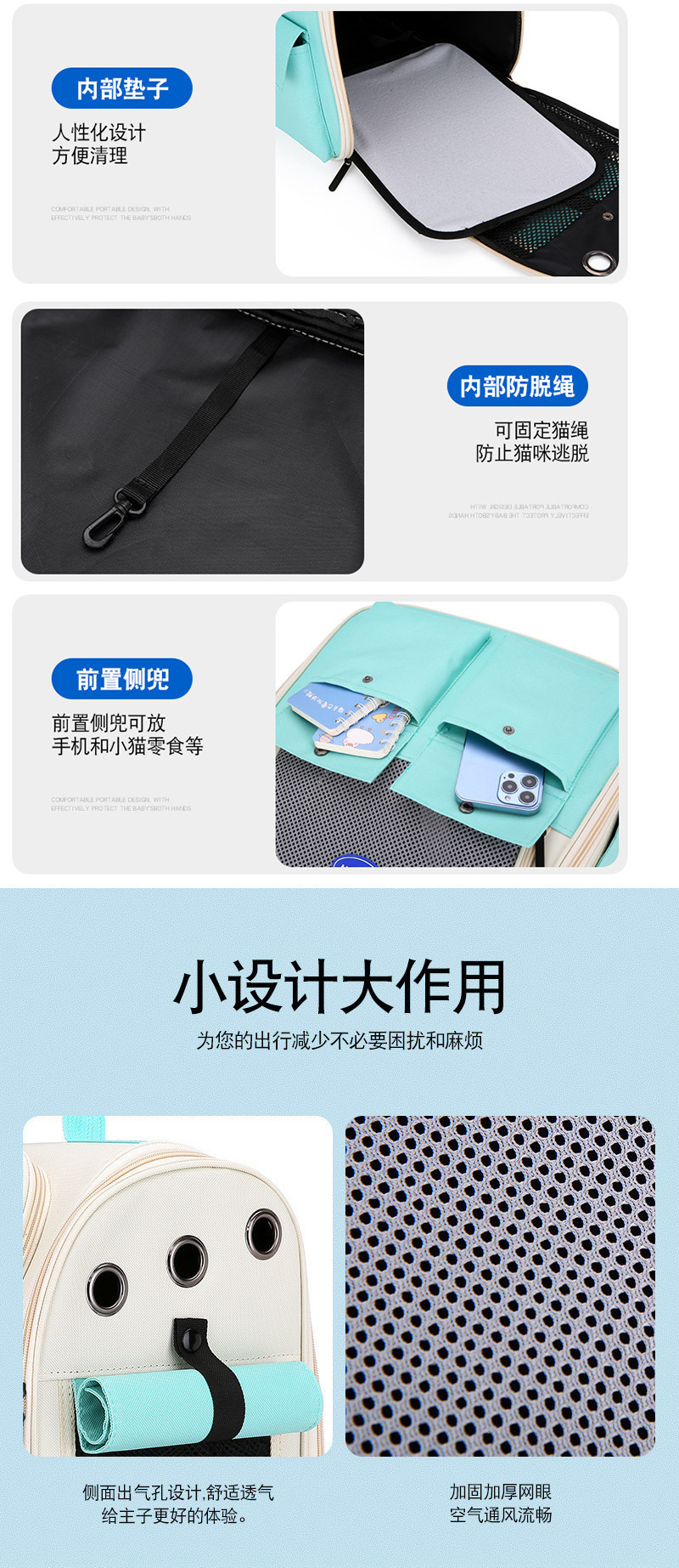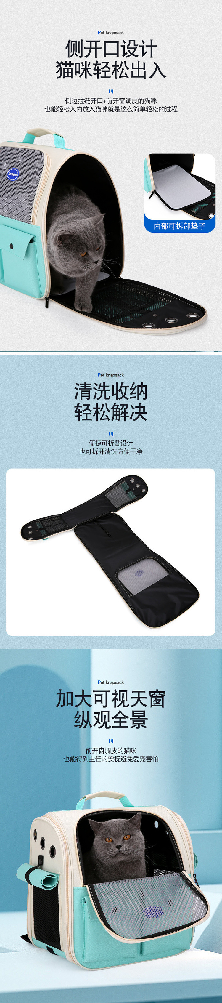 대용량 책가방, 배낭, 휴대용 배낭, 접이식 휴대용 개 및 애완동물 대용량 고양이 외출 가방