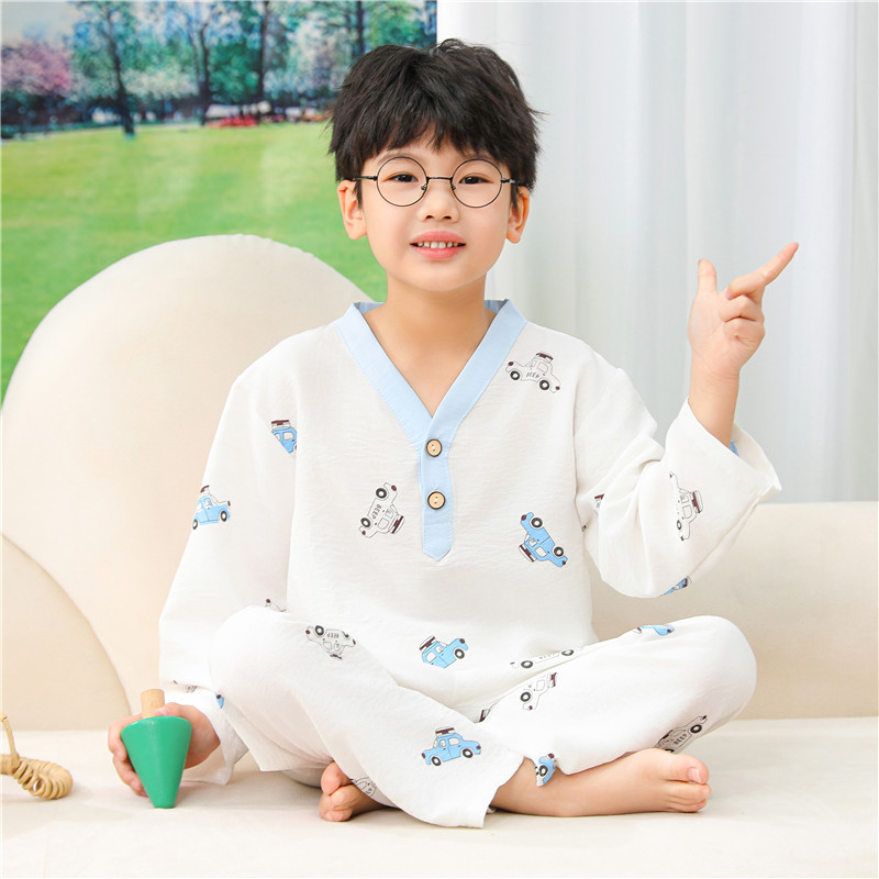여름 얇은 어린이 면 실크 파자마 긴팔 바지 홈 의류 세트 아기 소년 소녀 중년 어린이스토어 가기