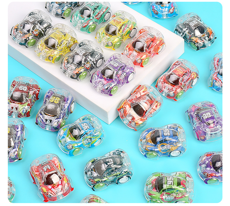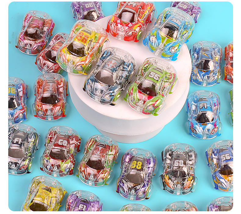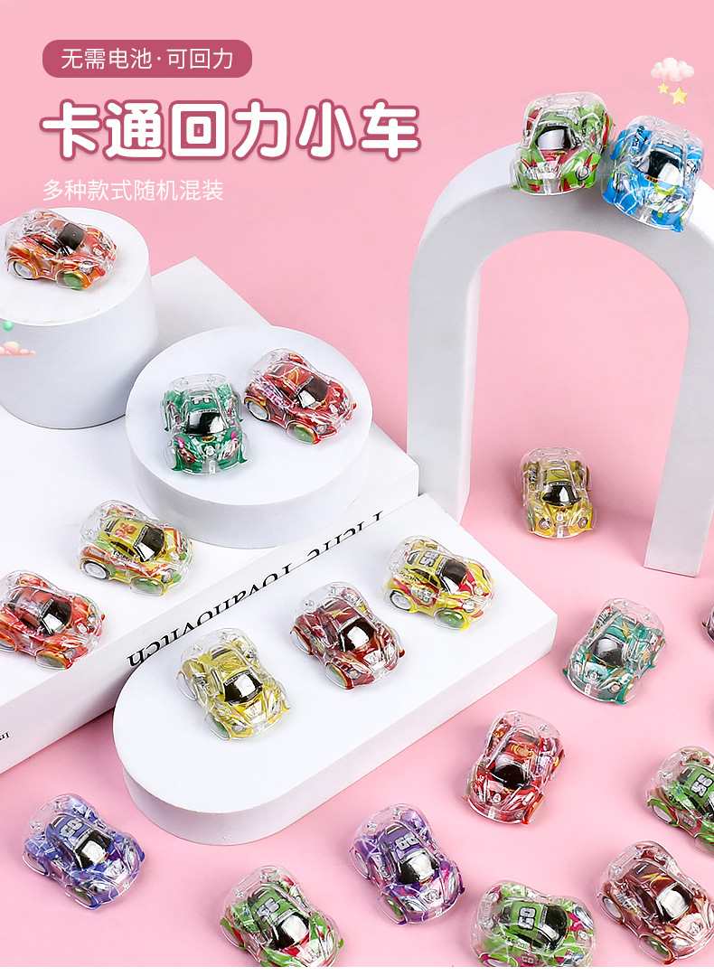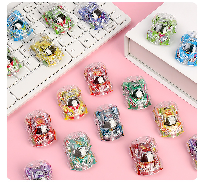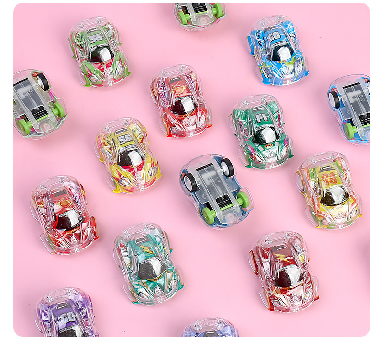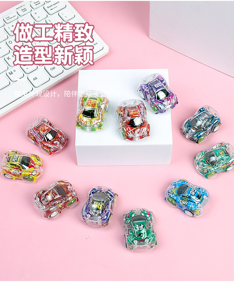 어린이 미니 Huili 자동차 만화 투명 레이싱 카 유치원 작은 선물 사탕 놀이 작은 장난감 국경 직접 공급스토어 가기