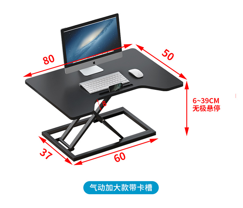 • 키보드 트레이가 있는 공압식 소형 더블 레이어(검은색)