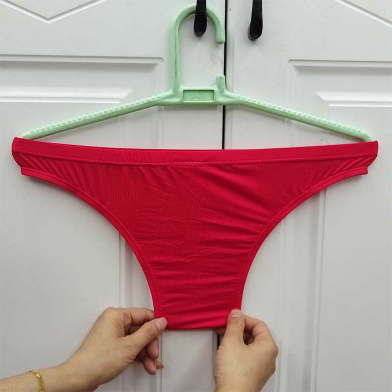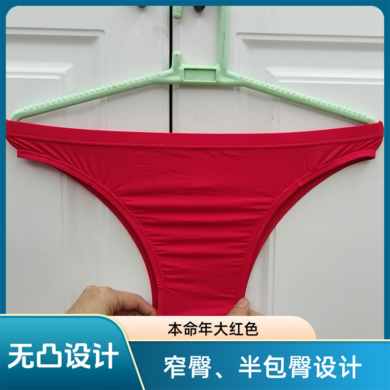 898 남자 낮은 허리 비 포켓 섹시 브리프 꽉 절반 엉덩이 좁은 엉덩이 얼음 실크 브닝 니언 빅 레드