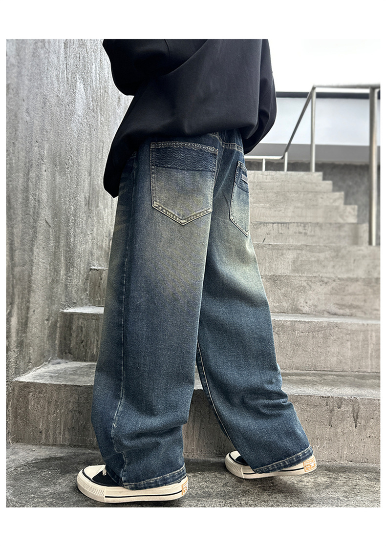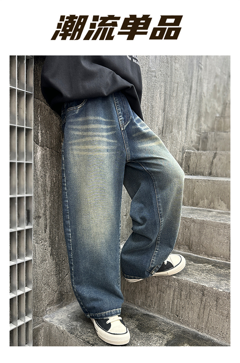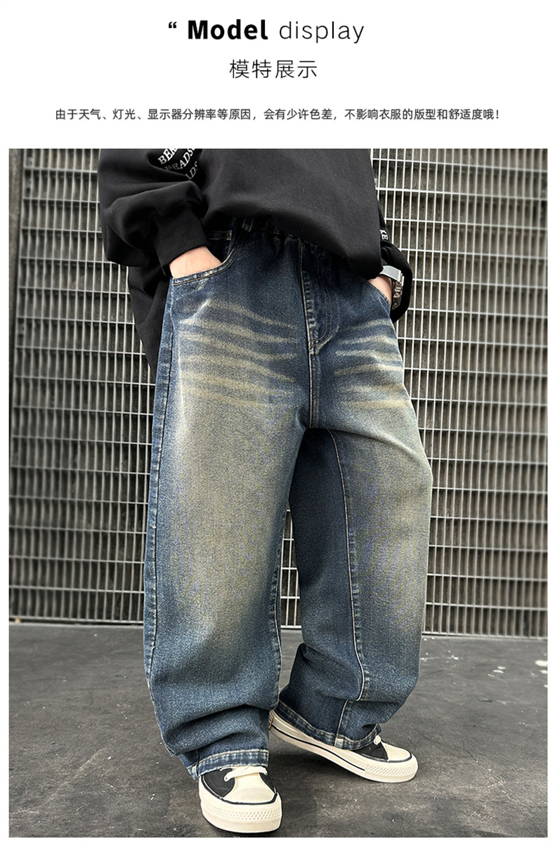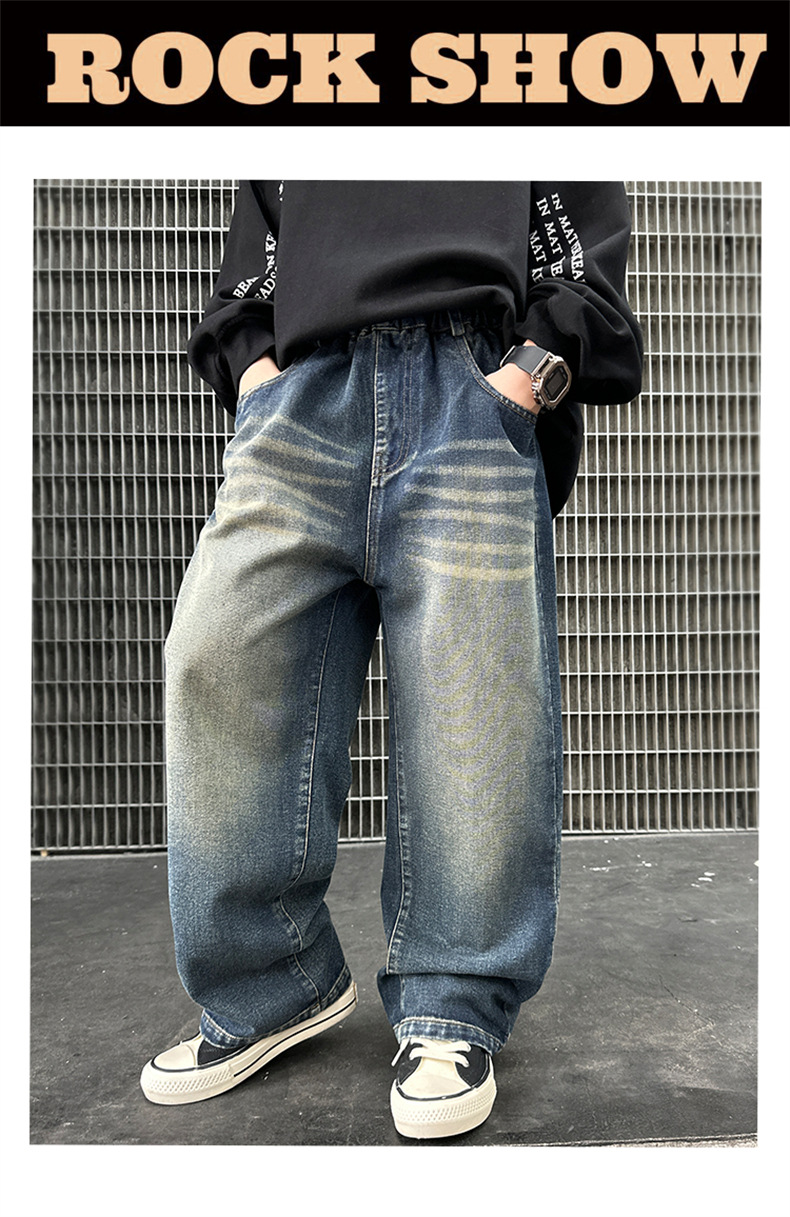 소년 데님 바지 봄과 가을 2025 새로운 봄 중다 어린이 봄 착용 소년 캐주얼 바지 한국 스타일스토어 가기