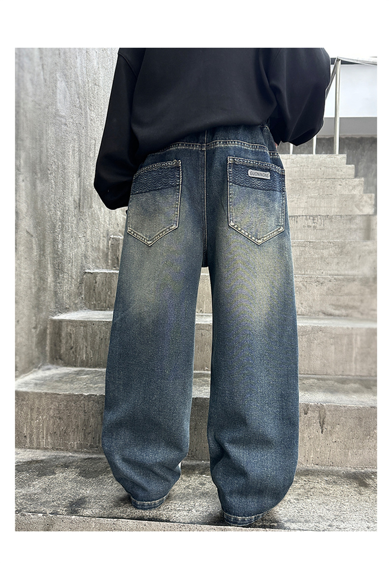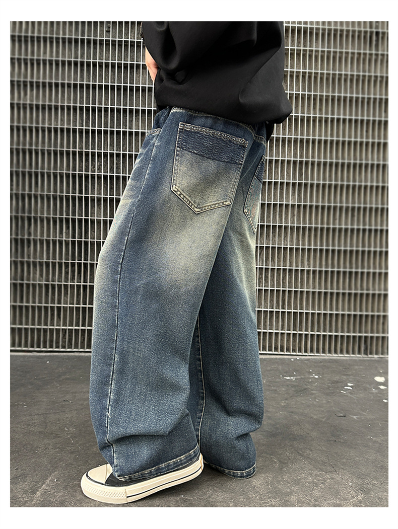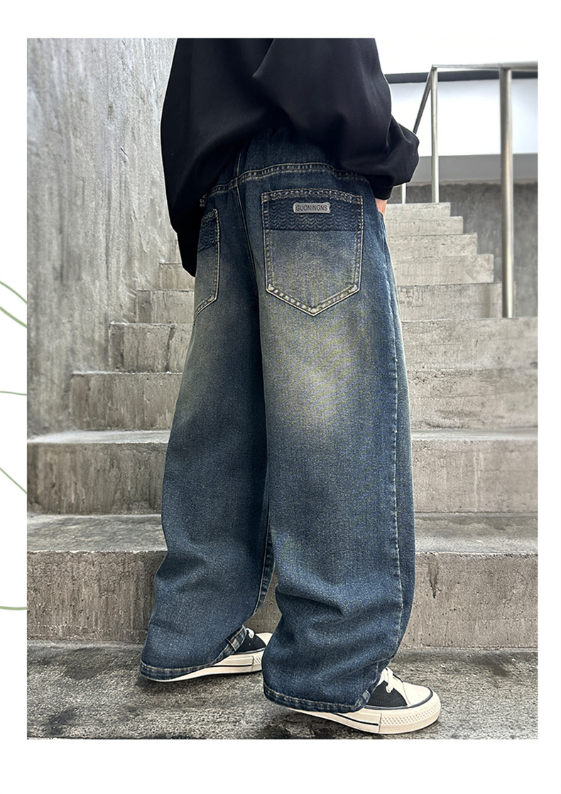 소년 데님 바지 봄과 가을 2025 새로운 봄 중다 어린이 봄 착용 소년 캐주얼 바지 한국 스타일