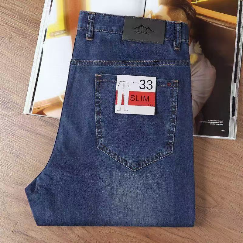 남성용 텐셀 코튼 부드러운 피부 친화적 인 편안한 청바지 봄과 여름 새로운 5 백 스트레치 얇은 스트레이트 다리 바지 남성용