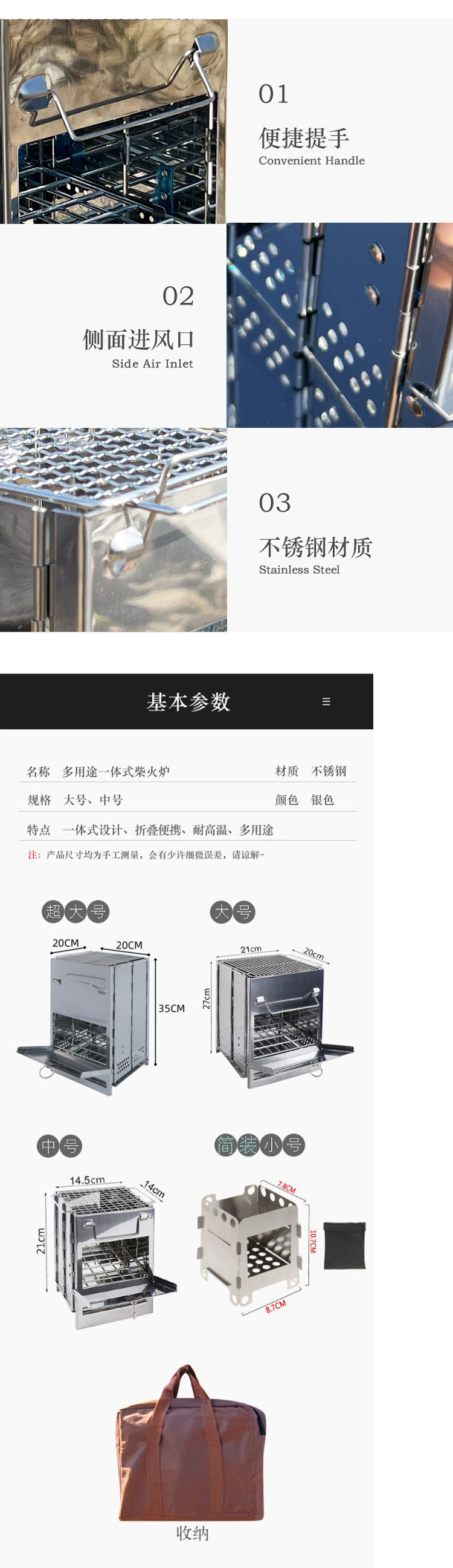 야외 휴대용 장작 난로 산 등반 캠핑 피크닉 접는 숯 바베큐 야외 캠핑 스테인레스 스틸 바베큐 그릴스토어 가기