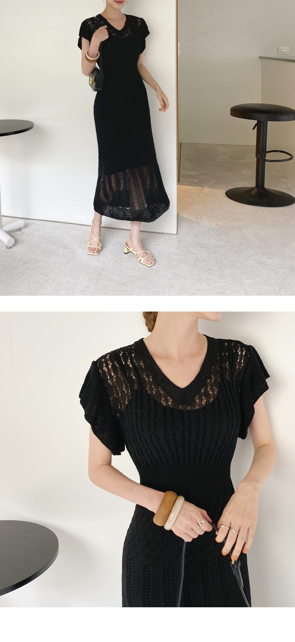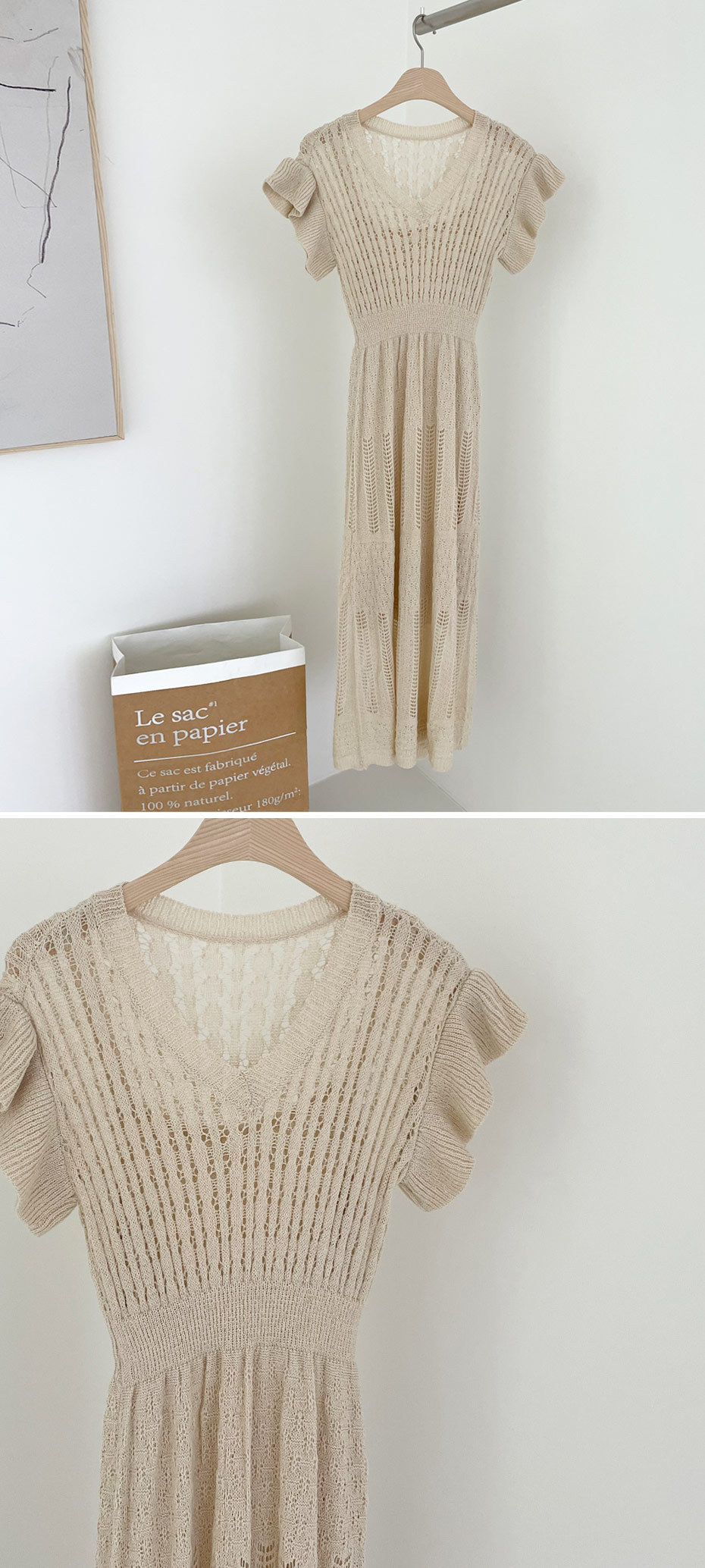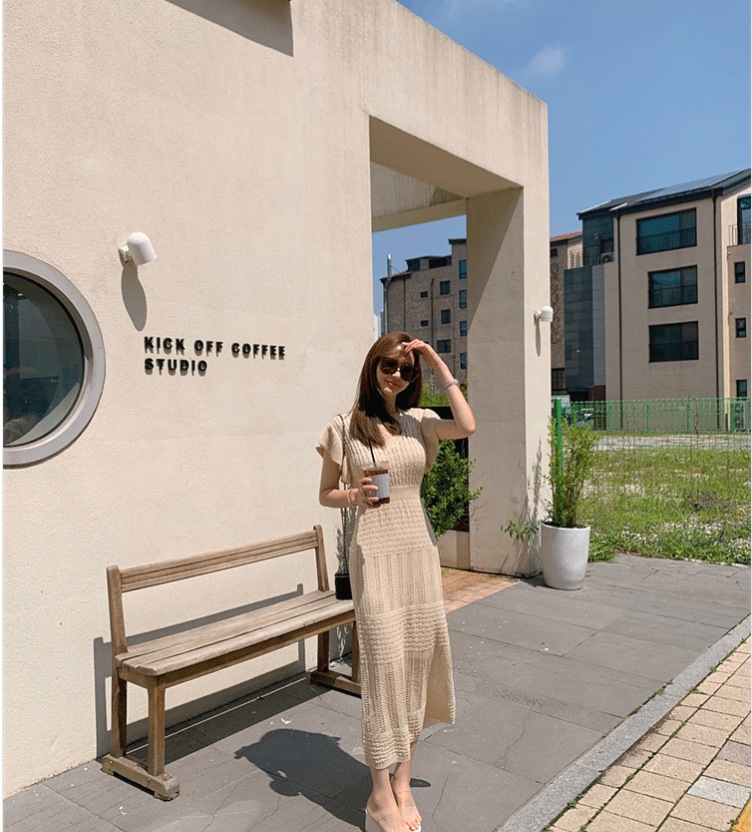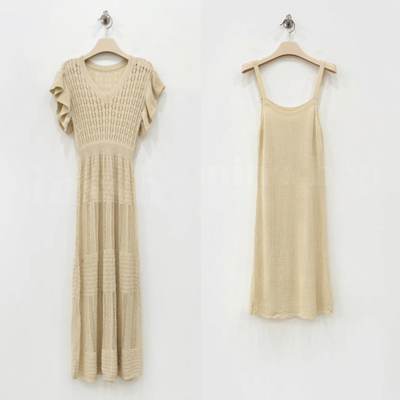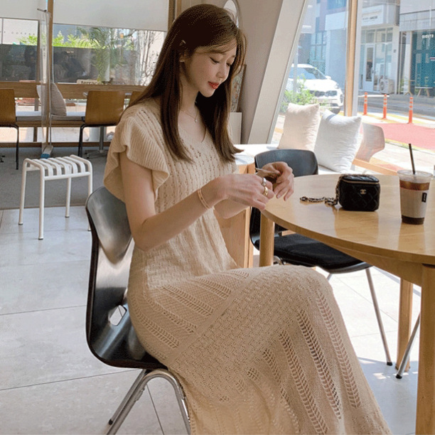 한국 여성용 여름 슬림 핏 젠틀 V 넥 러플 반팔 하이 웨이스트 롱 원피스 베이스 슬링스토어 가기