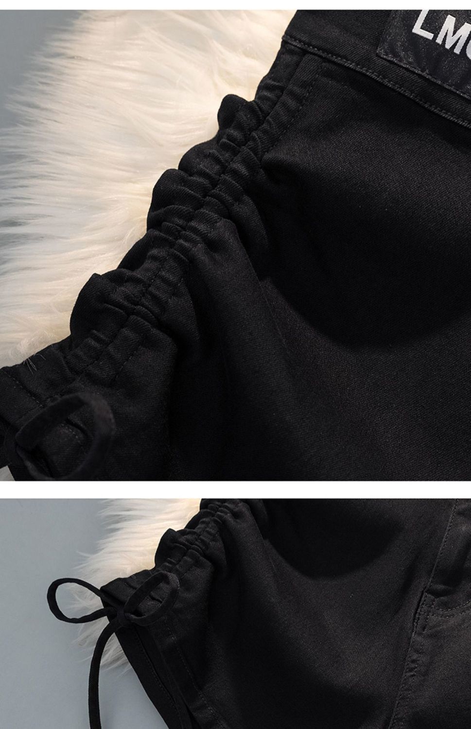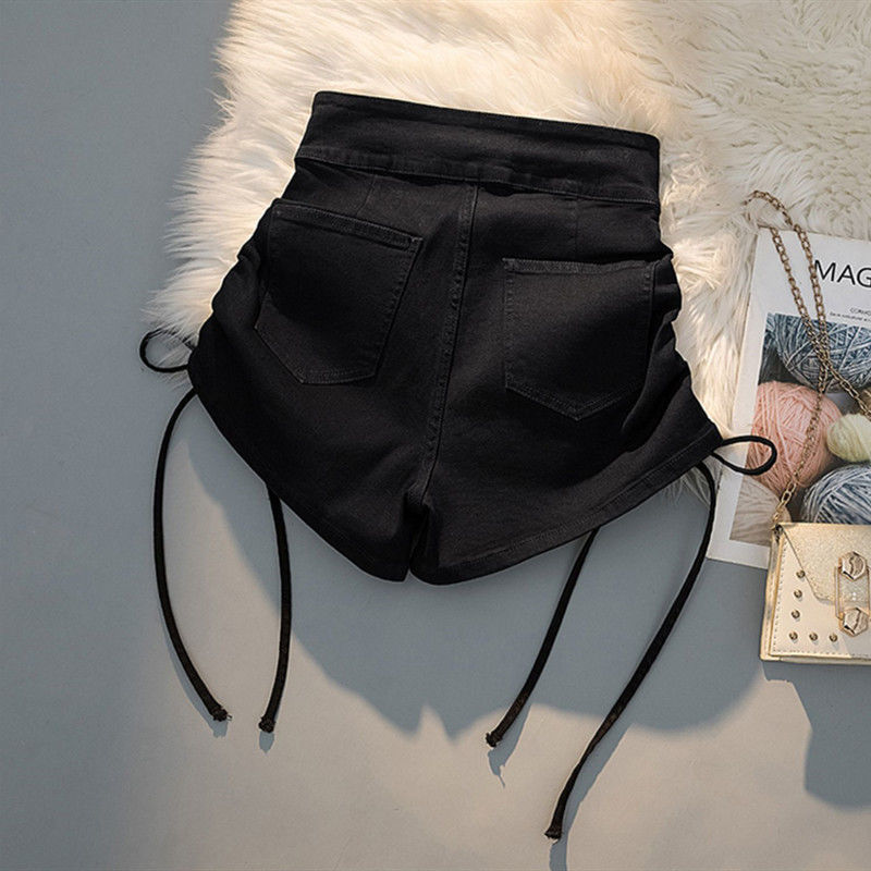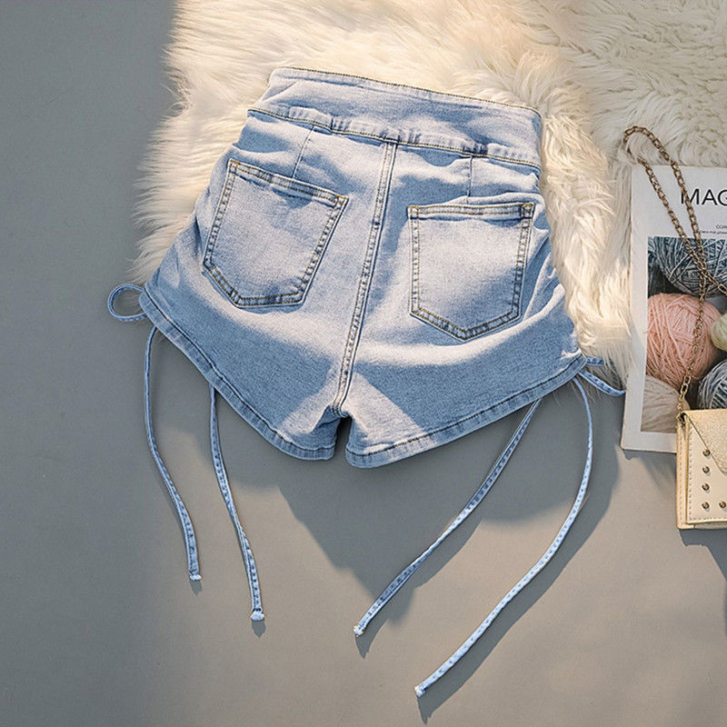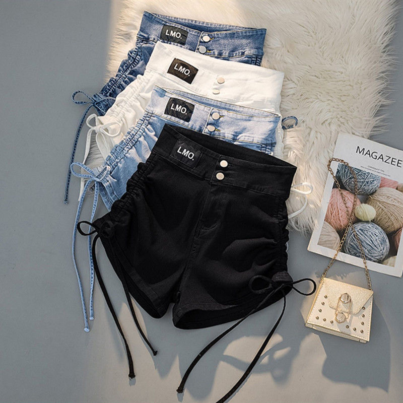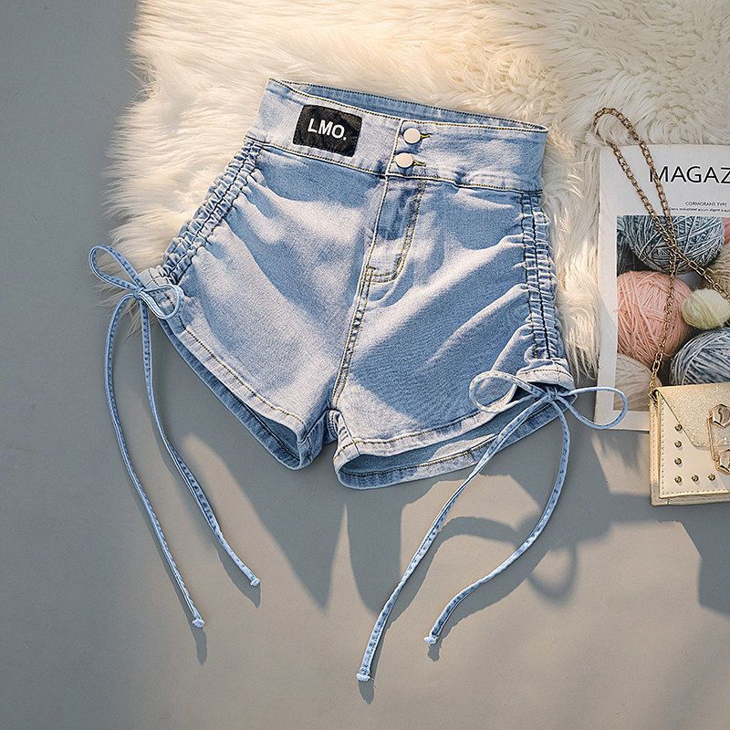 플러스 사이즈 통통한 데님 반바지 여성 여름 얇은 높은 허리 틈새 디자인 센스 드로우 스트링 스트레치 스파이스 걸스 와이드 레그 핫 바지스토어 가기