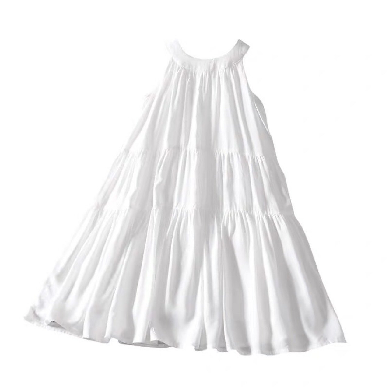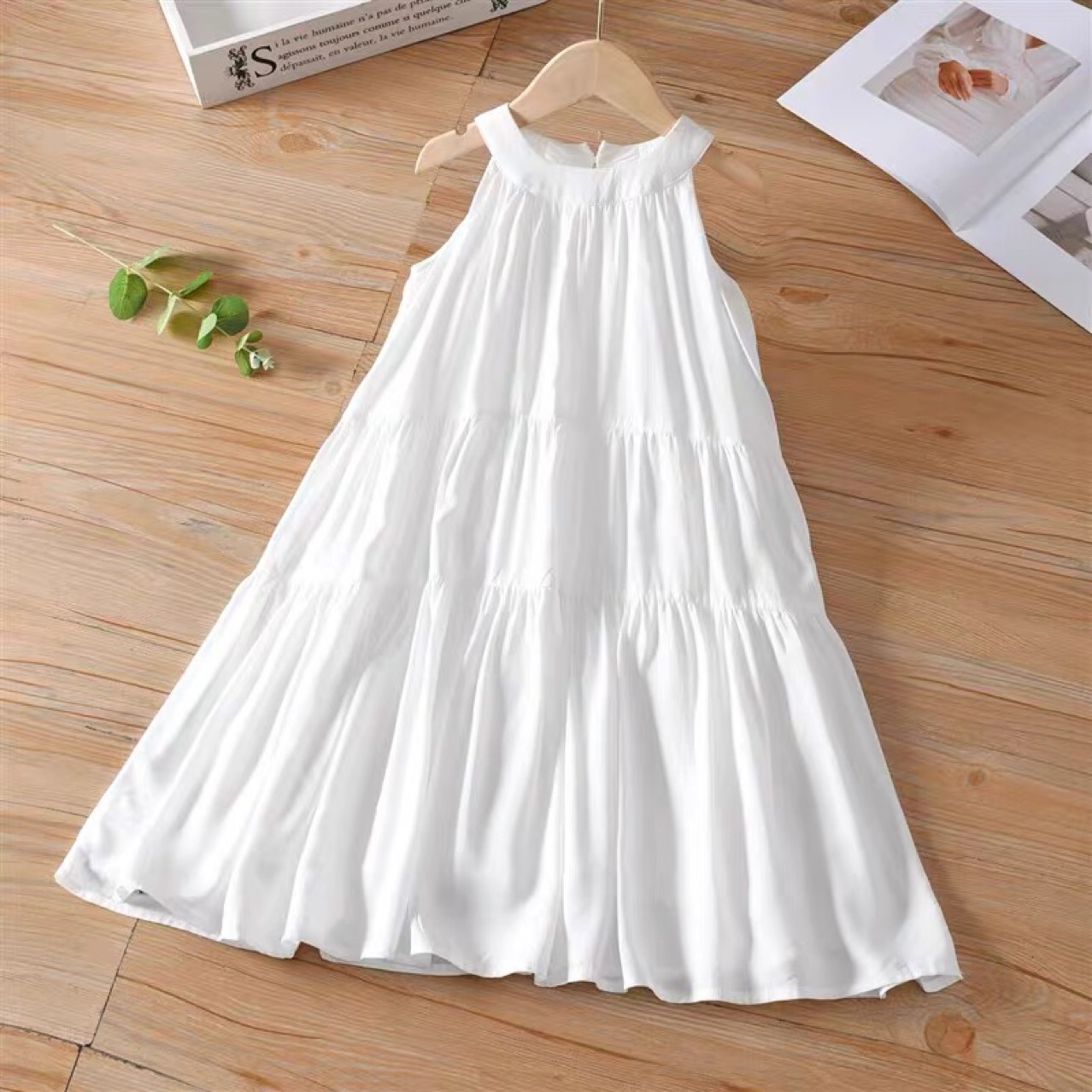 여자 민소매 목 조끼 치마 여름 새로운 도착 큰 아이들 솔리드 컬러 슈퍼 페어리 타이-염료 화이트 원피스 여름스토어 가기