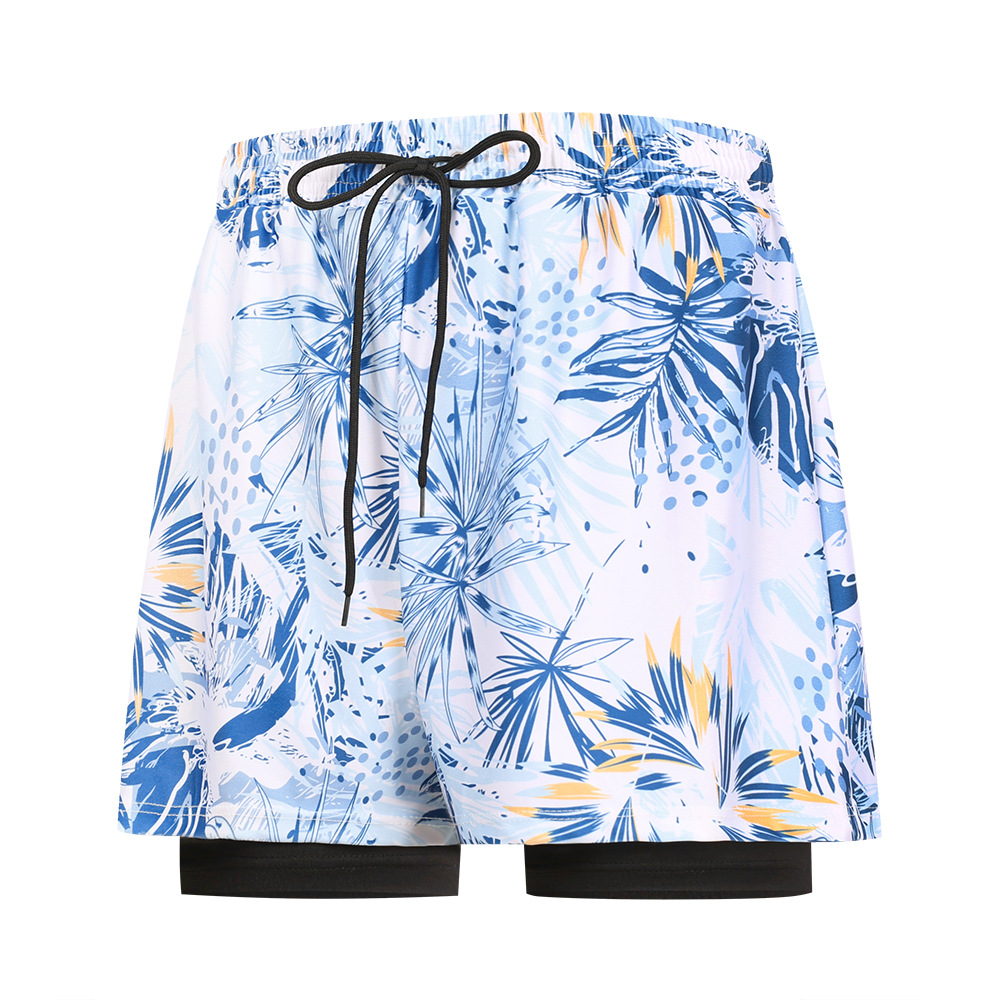 공장 공급 수영 트렁크 남성 복서 5 점 수영복 세트 플러스 사이즈 방황 더블 레이어 전문 해변 성인