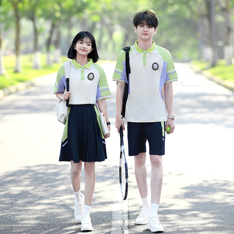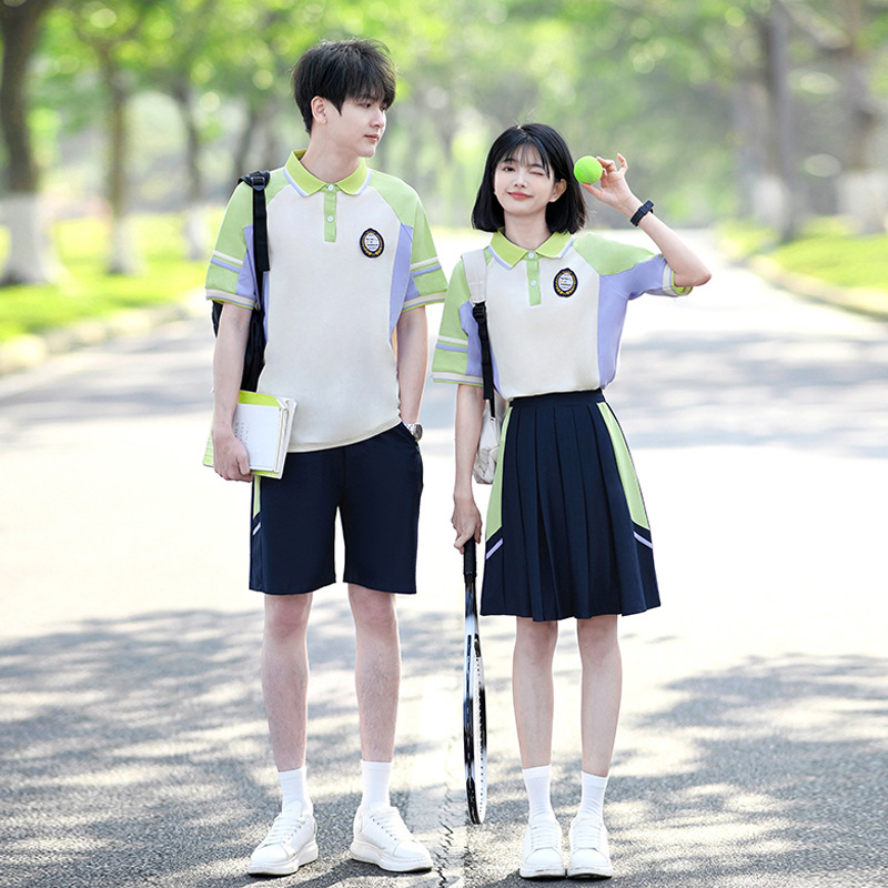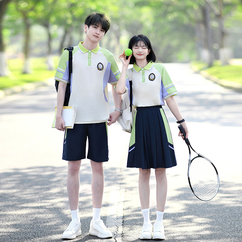 2025 여름 커플 의류 반팔 중학교 스포츠 회의 대학 스타일 반팔 티셔츠 학생 클래스 의류 세트