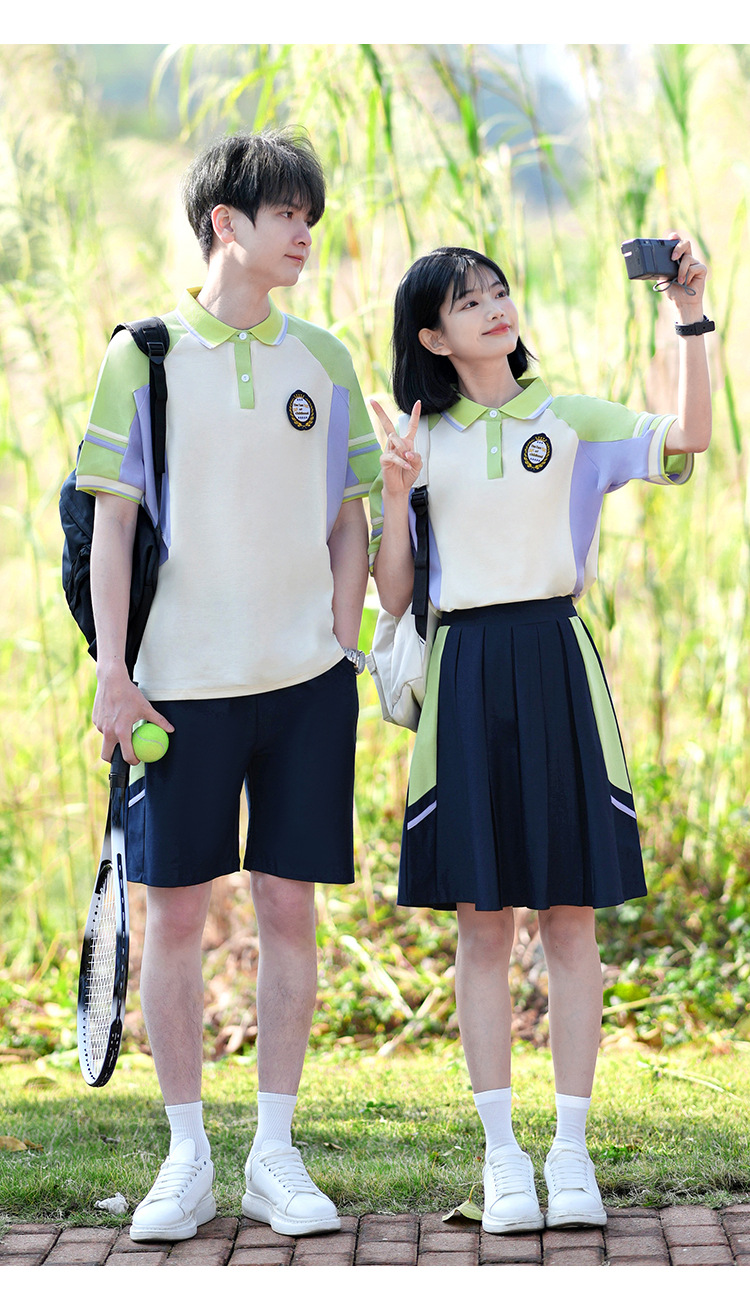 2025 여름 커플 의류 반팔 중학교 스포츠 회의 대학 스타일 반팔 티셔츠 학생 클래스 의류 세트스토어 가기