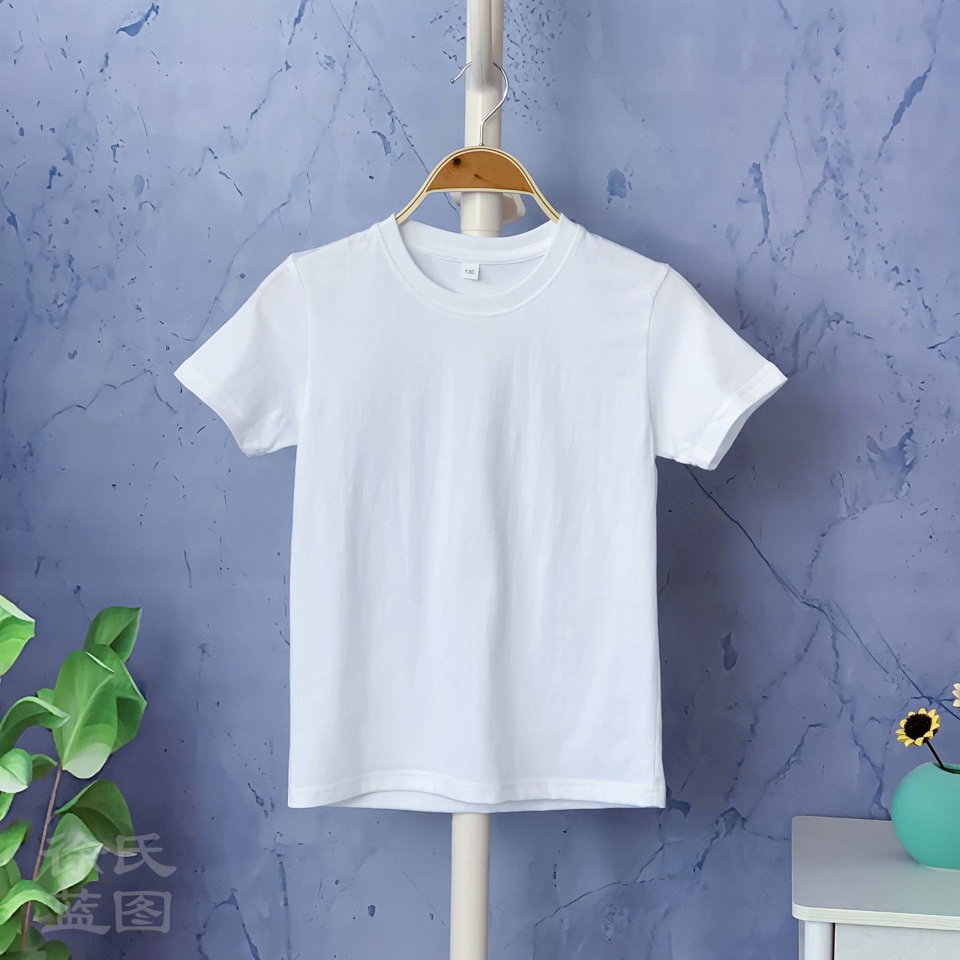 넥타이 염색 화이트 빌렛 여름 매우 간단한 스타일 어린이 단색 티셔츠 200g21 코튼 아동복 소년 소녀 화이트 T