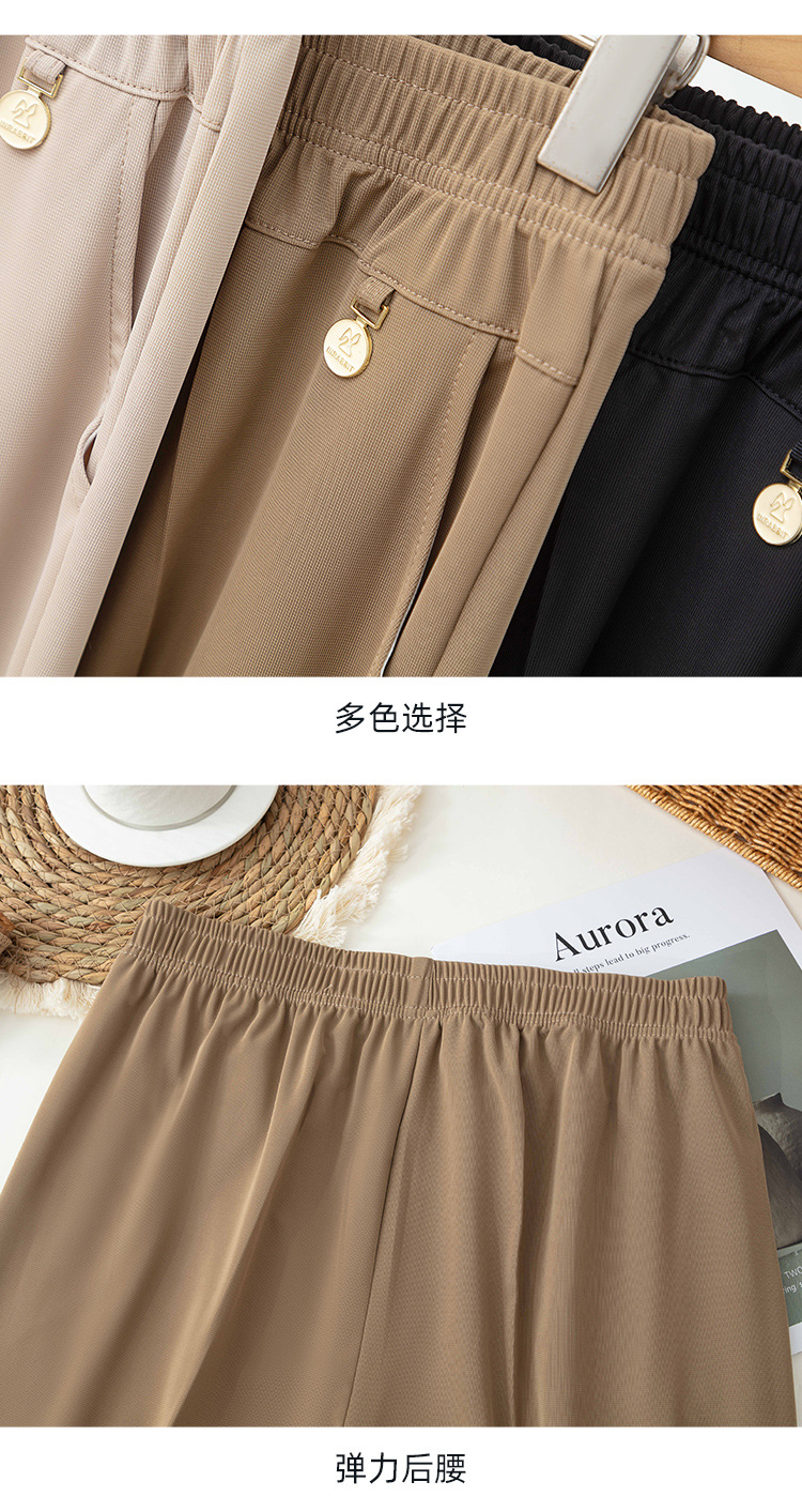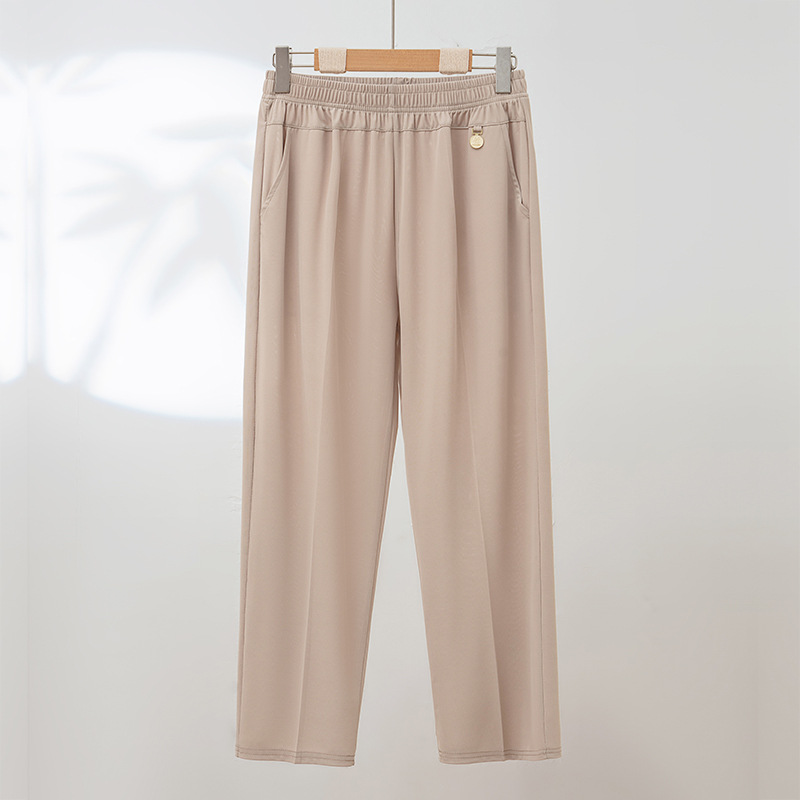 중년 및 노인 여성을위한 여름 아이스 실크 바지 얇은 엄마 바지 높은 허리 직선 느슨한 탄성 캐주얼 자른 바지