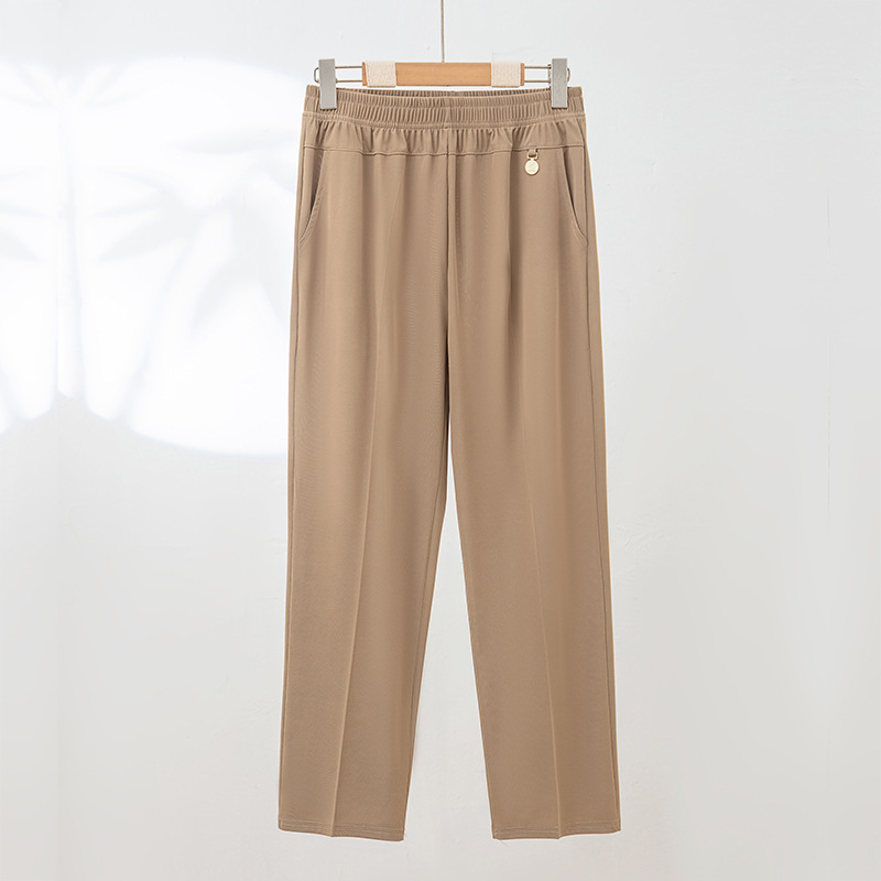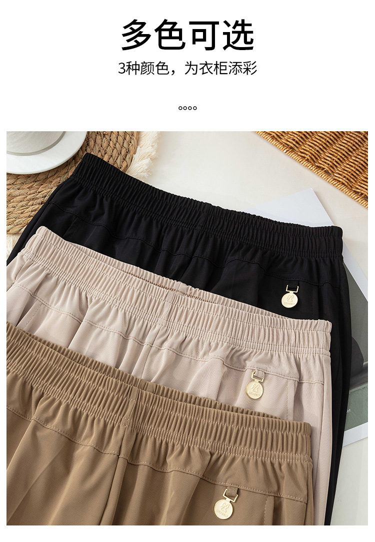 중년 및 노인 여성을위한 여름 아이스 실크 바지 얇은 엄마 바지 높은 허리 직선 느슨한 탄성 캐주얼 자른 바지스토어 가기