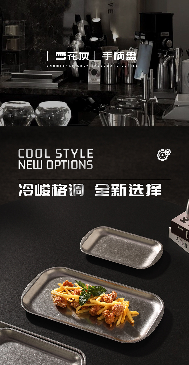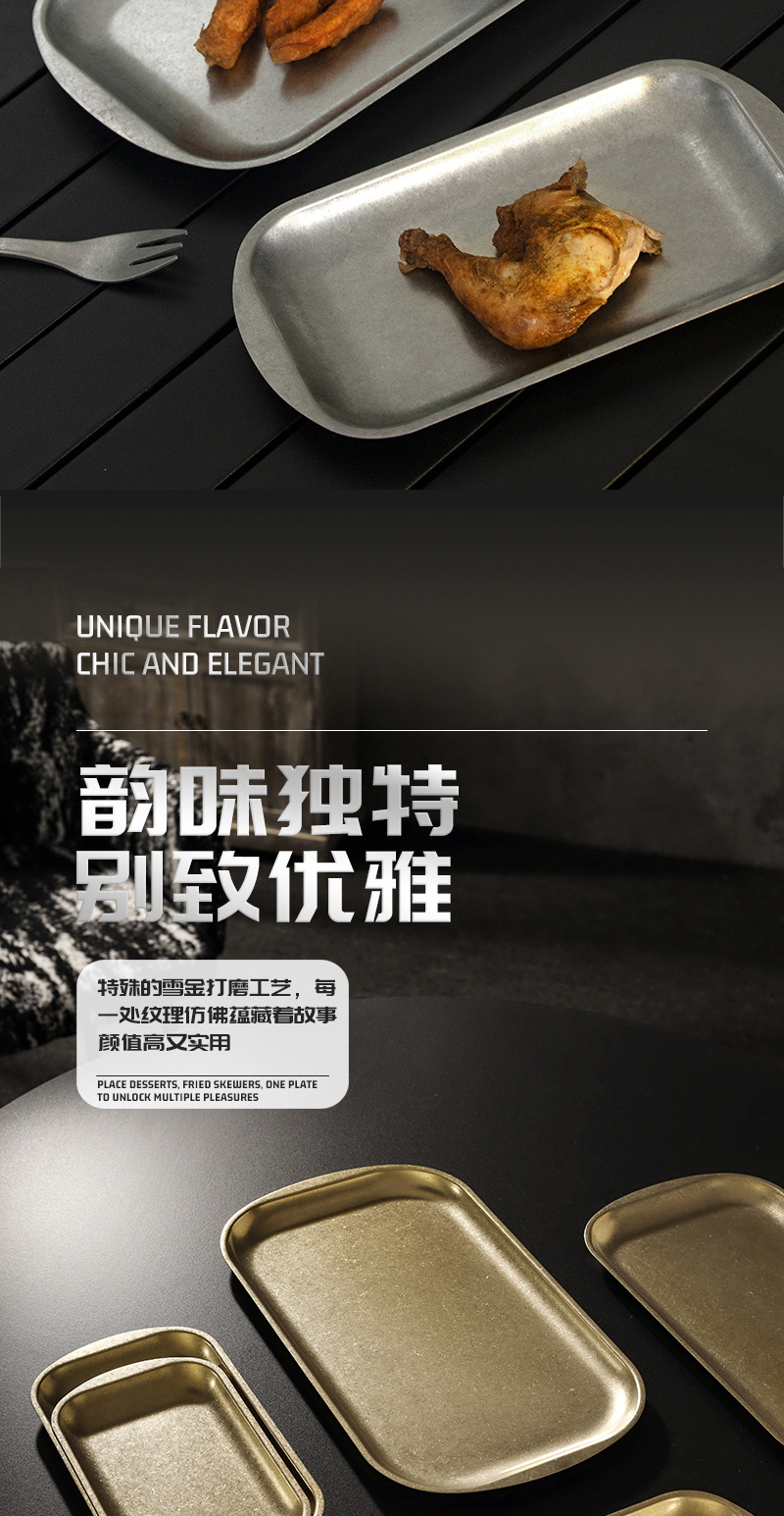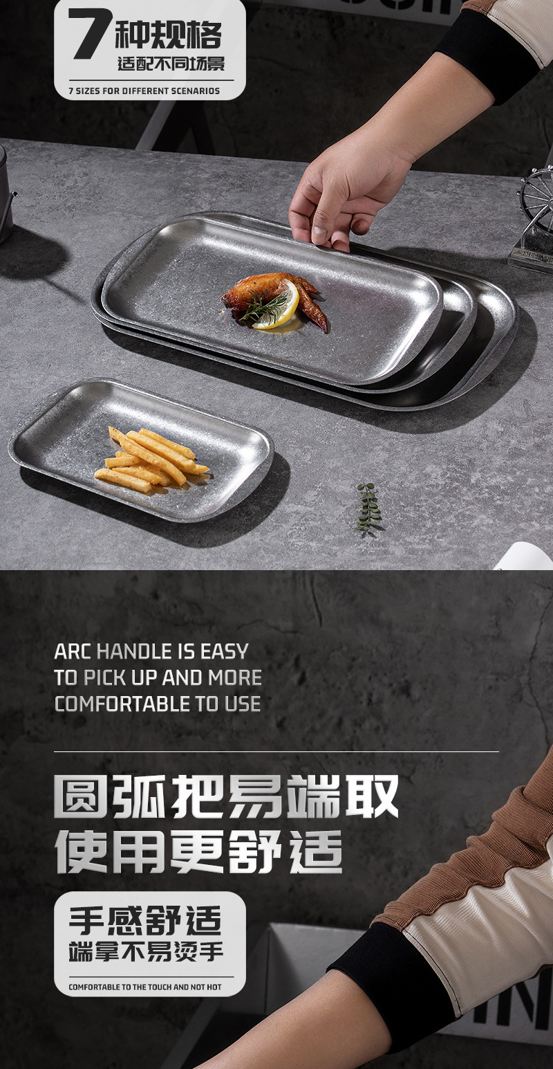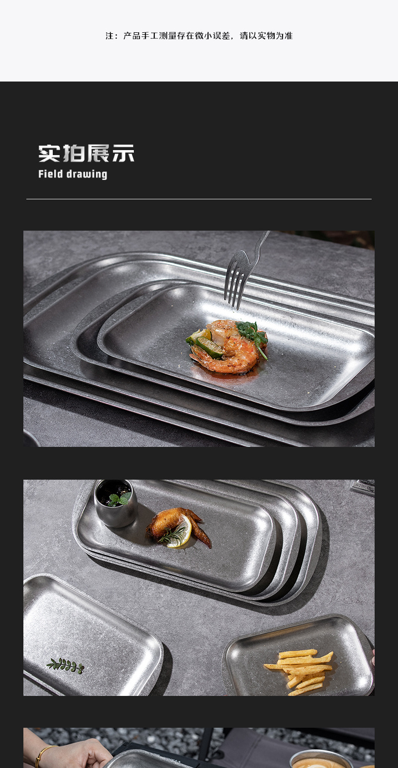 새로운 304 스테인레스 스틸 접시 식품 등급 디너 접시 디저트 접시 눈송이 회색 복고풍 트레이 직사각형 반찬 트레이