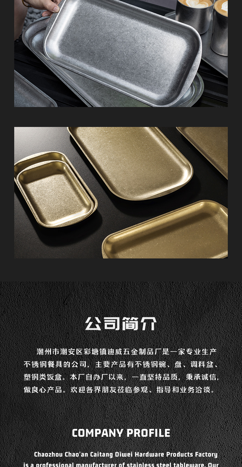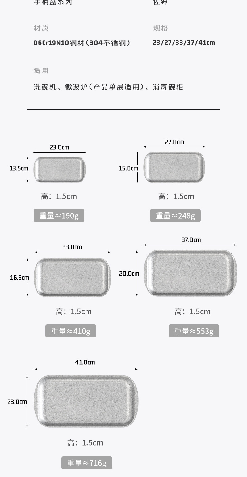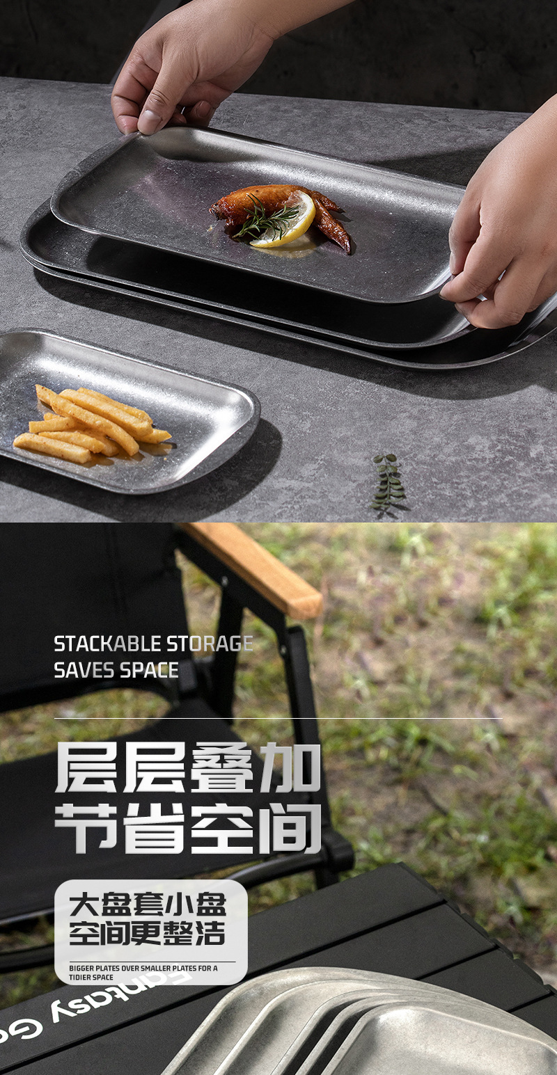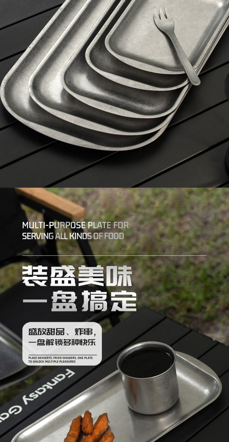 새로운 304 스테인레스 스틸 접시 식품 등급 디너 접시 디저트 접시 눈송이 회색 복고풍 트레이 직사각형 반찬 트레이