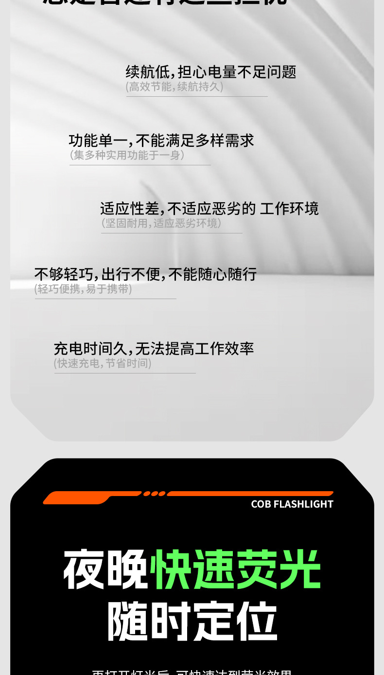 다기능, 고효율, 에너지 절약, 강한 조명, 충전식 작업등, 야외 방수, 긴 배터리 수명, 자석 흡착, 휴대용 작업등스토어 가기