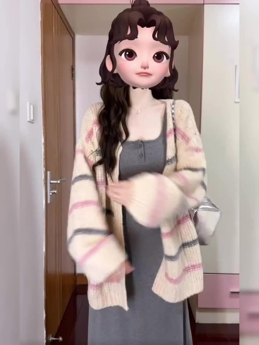 봄 한국 드라마 여성 착용 기질 여신 팬 프랑스 플라티코돈 줄무늬 니트 카디건 원피스 2 피스 세트