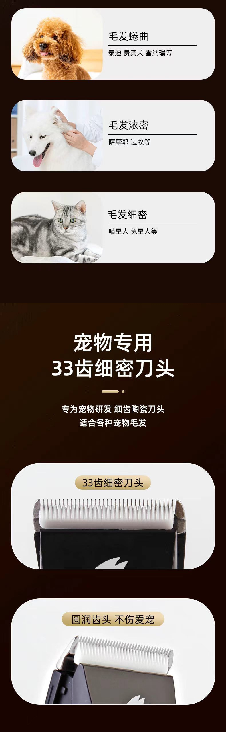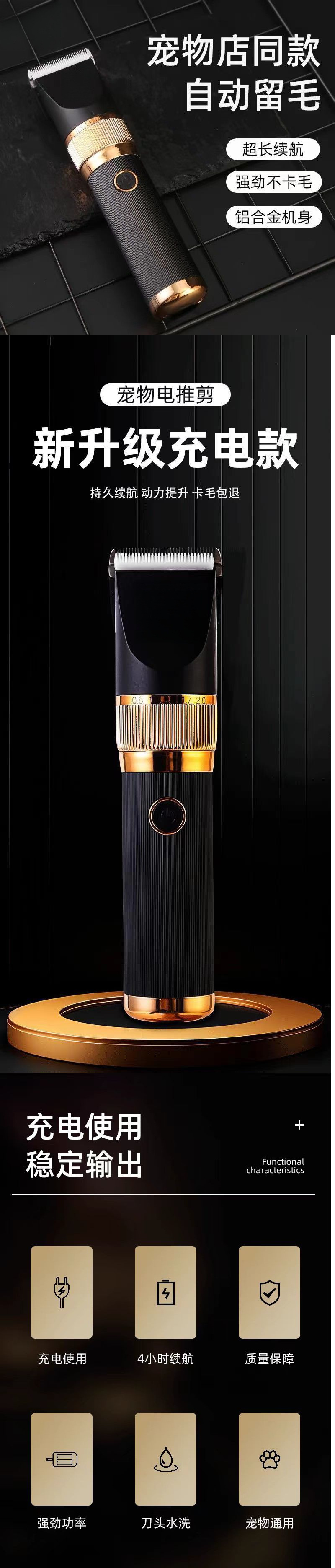 자동 헤어 클리퍼, 알루미늄 합금 본체, 매우 긴 배터리 수명, 고양이와 개를 위한 범용 헤어 클리핑 도구