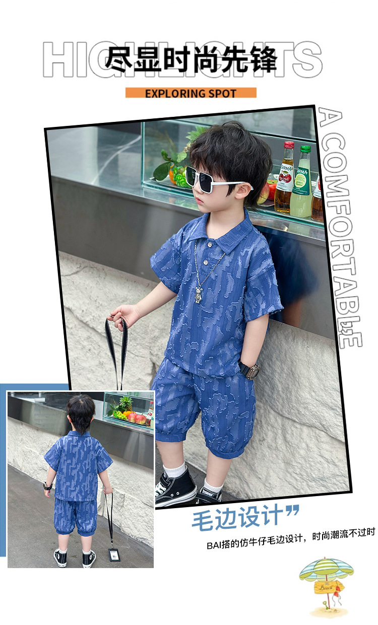 소년의 여름 자카드 폴로 2025 세트 새로운 어린이 반팔 캐주얼 투피스 세트 어린이 잘 생긴 옷스토어 가기