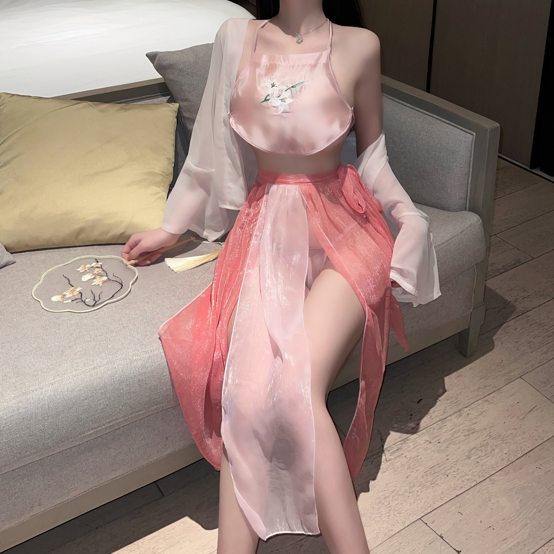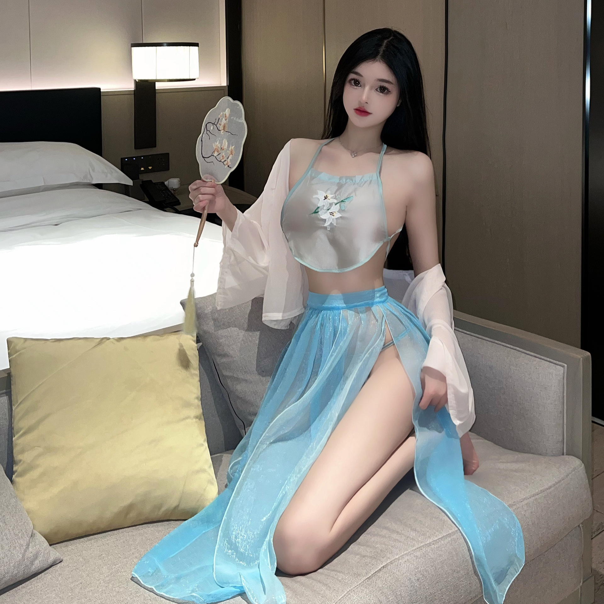 쉬폰 투망 사오 한옷 파자마 침대 데이트 청삼 섹시 속옷 투명한 성인 배꼽 잠옷스토어 가기