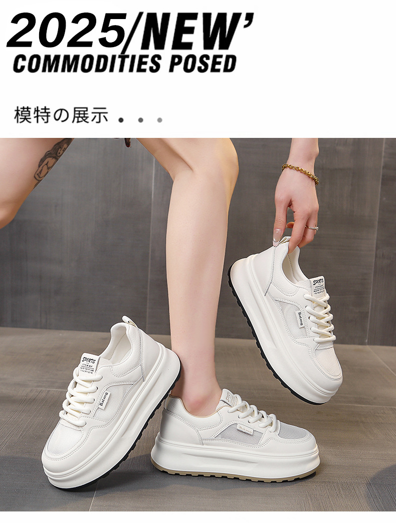 두꺼운 밑창 증가 된 가죽 팬더 스케이트 신발 여성 신발 2025 봄 여성을위한 새로운 올 매치 캐주얼 운동화 흰색 신발스토어 가기