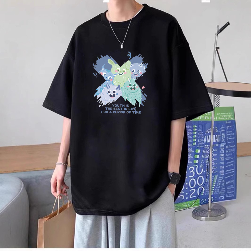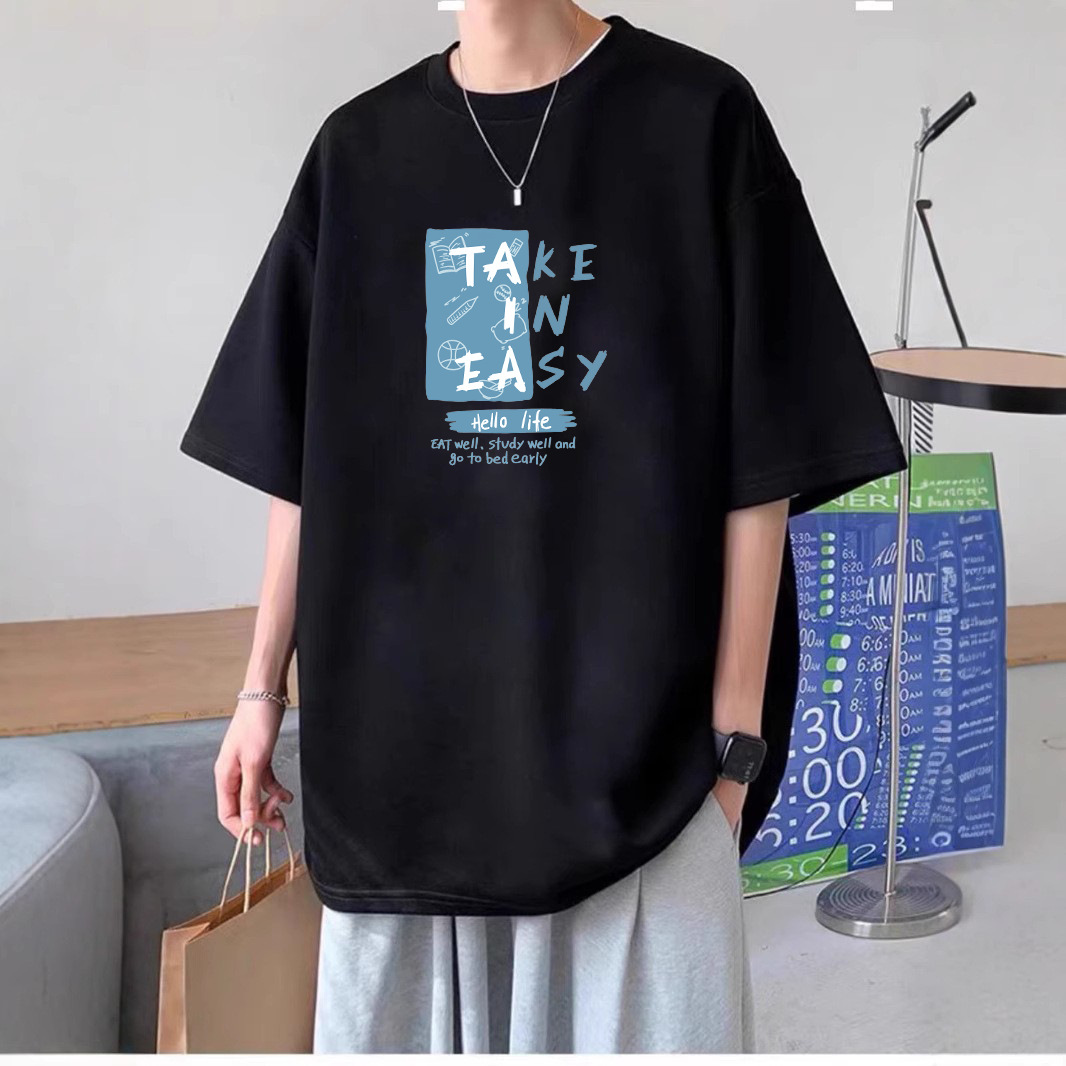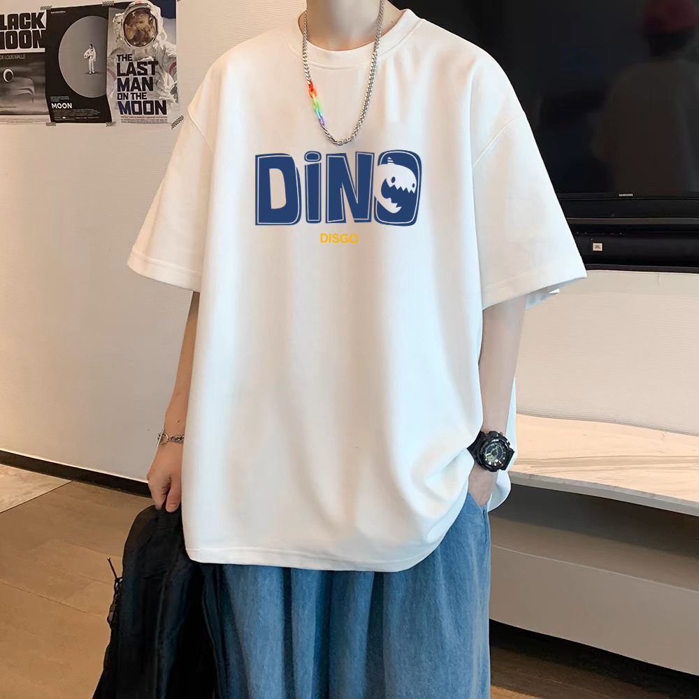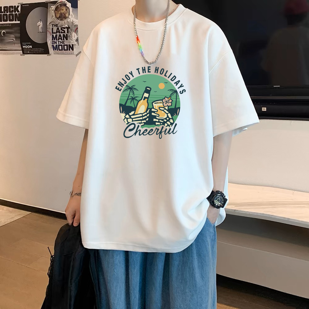 라운드 넥 퓨어 코튼 반팔 티셔츠 남자 올 매치 홍콩 스타일 탑 루즈 트렌디 브랜드 핸섬 프린트 티셔츠 남성베이스 셔츠스토어 가기