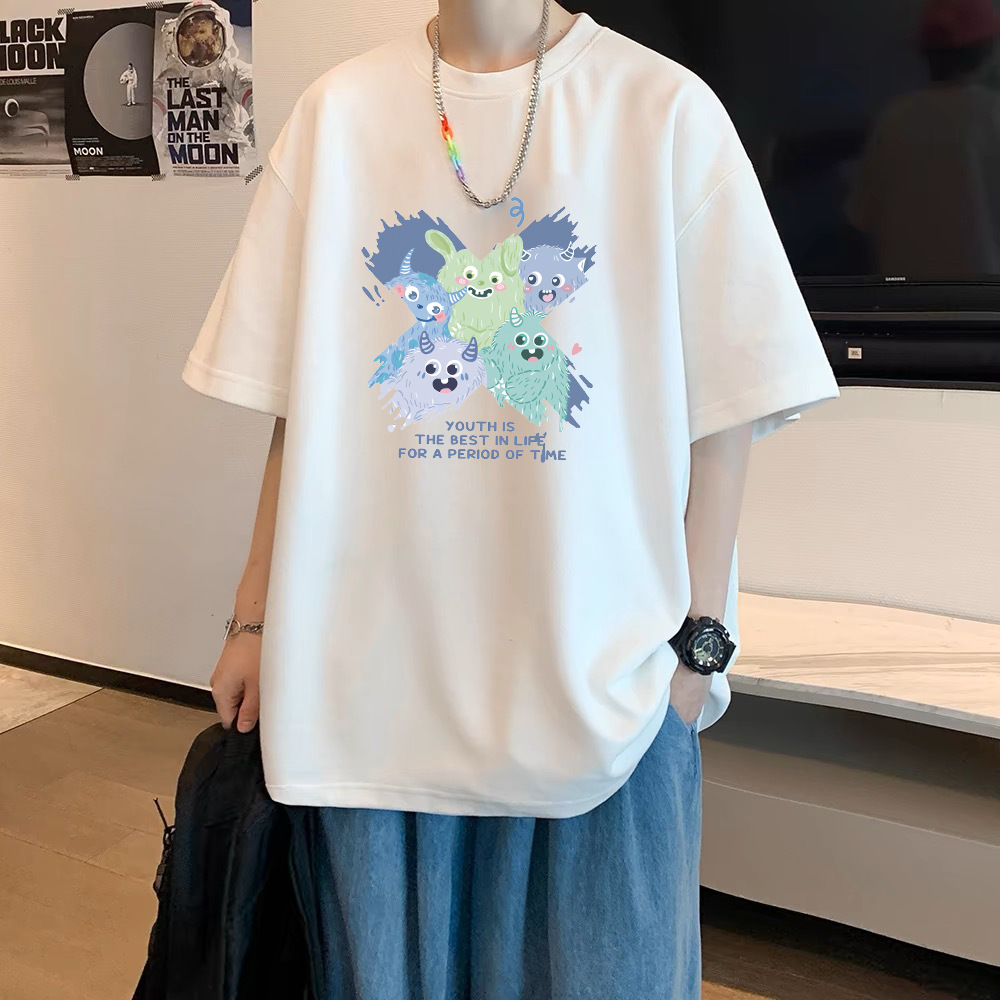 라운드 넥 퓨어 코튼 반팔 티셔츠 남자 올 매치 홍콩 스타일 탑 루즈 트렌디 브랜드 핸섬 프린트 티셔츠 남성베이스 셔츠