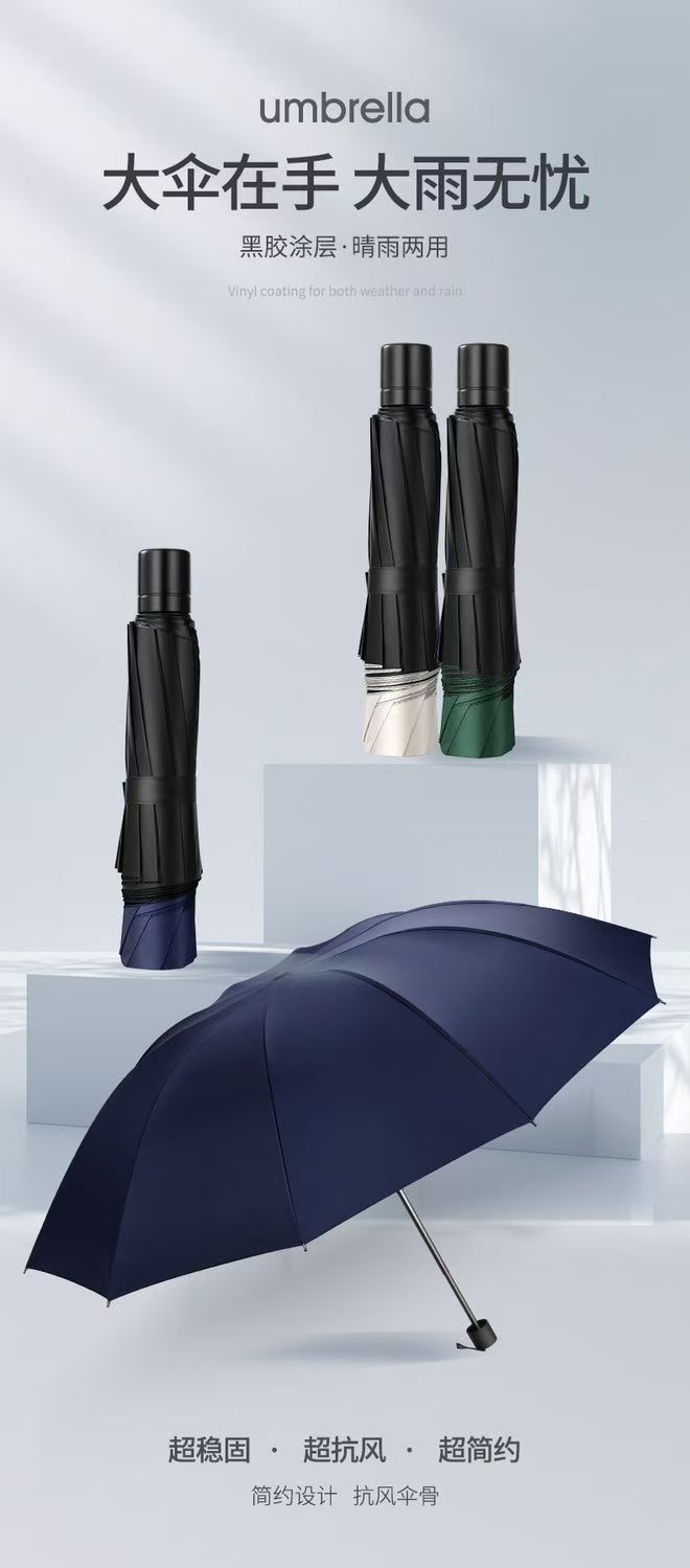 • 손으로 열리는 12본 특대 3인우산-네이비블루