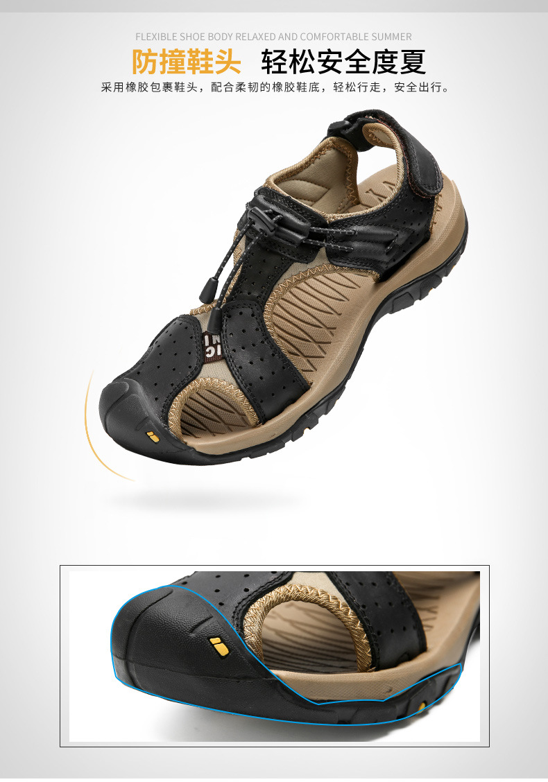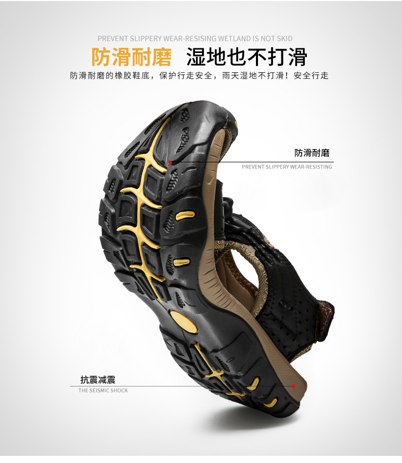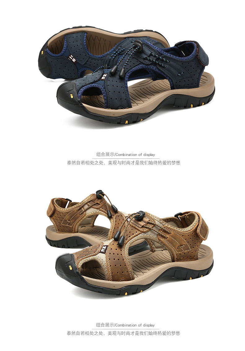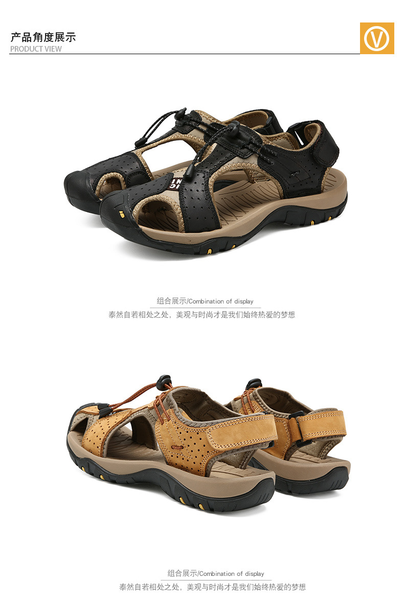 국경 간 폭발 남자 슬리퍼 탑 레이어 진짜 소 가죽 여름 속이 빈 샌들 야외 통기성 비치 슈즈 남성용 아웃도어