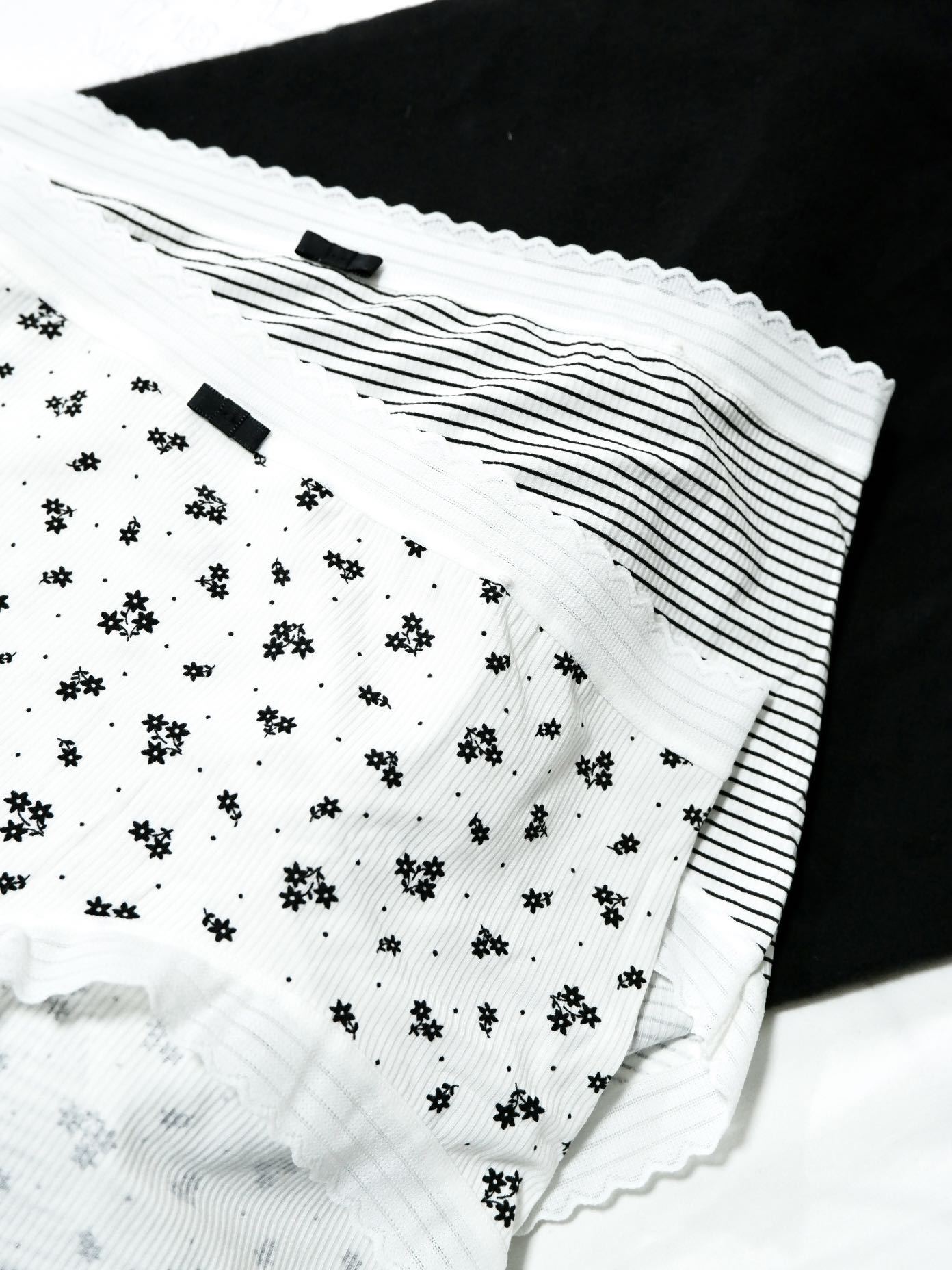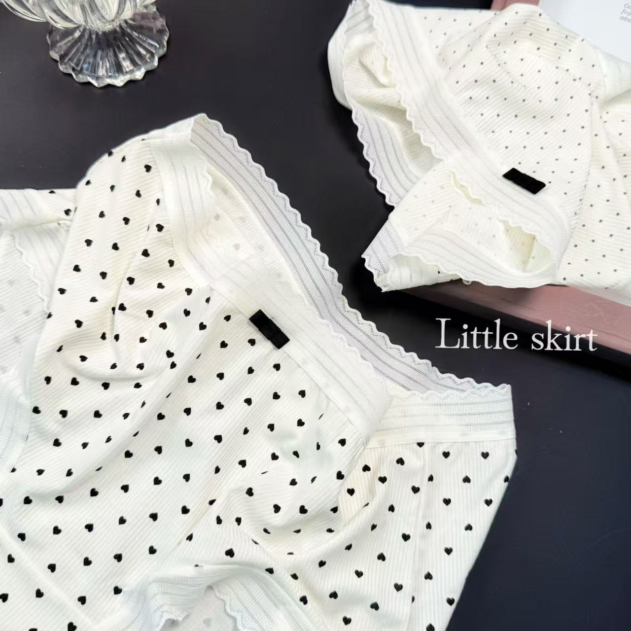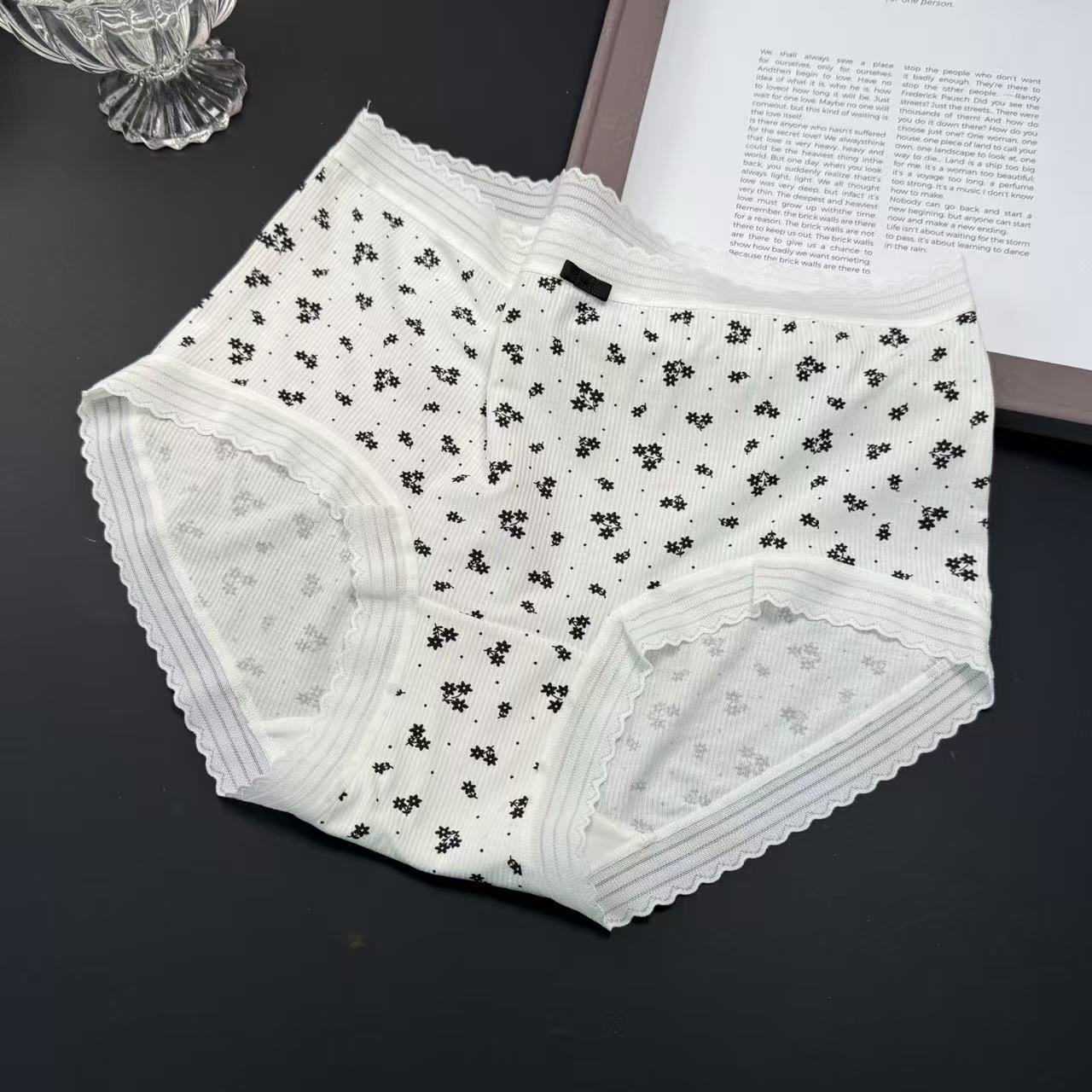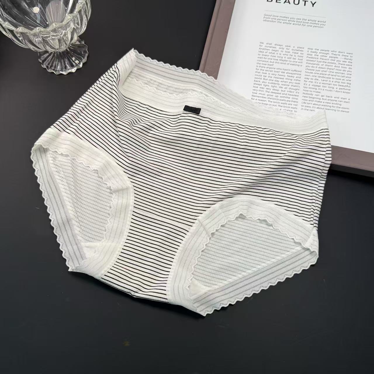 샤오란치마 Y020 흑백 프린트 시리즈 여성 속옷 80수 골지 중간 허리 라인 팬티 피부 친화적이고 통기성 좋은 삼각팬티