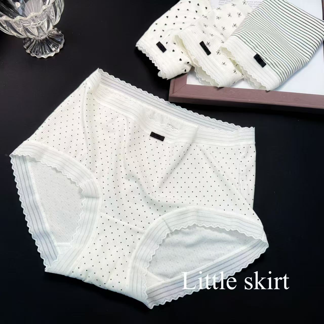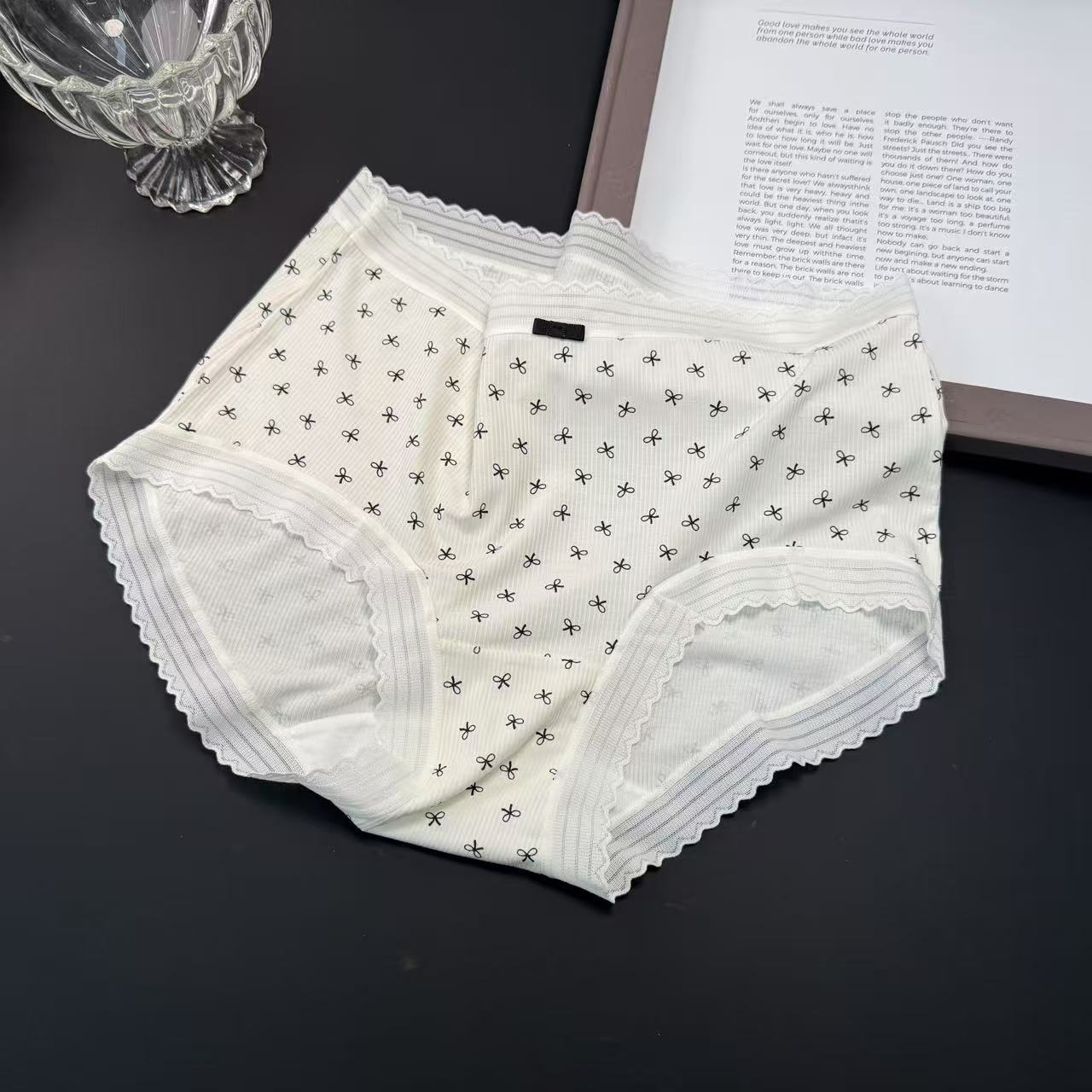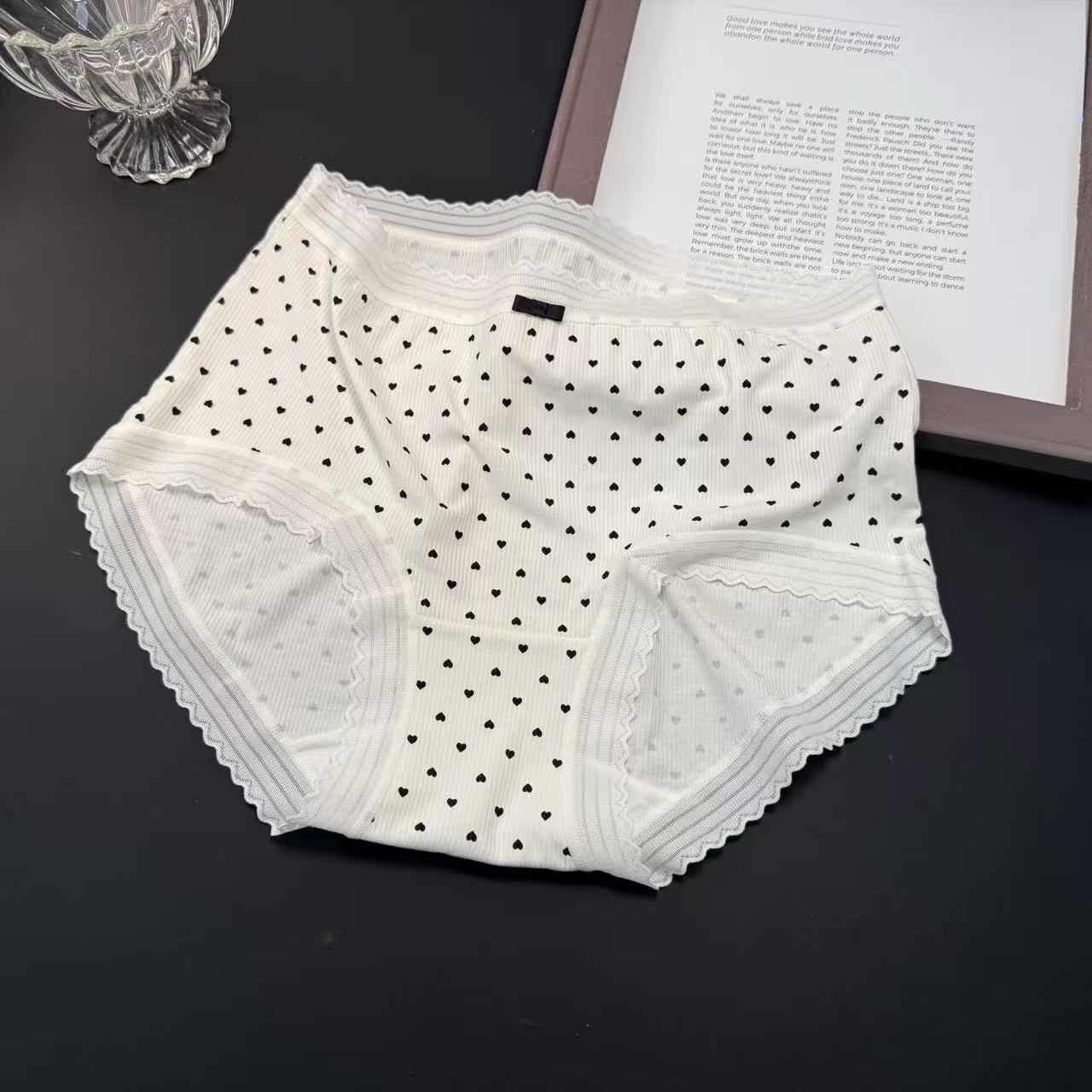 샤오란치마 Y020 흑백 프린트 시리즈 여성 속옷 80수 골지 중간 허리 라인 팬티 피부 친화적이고 통기성 좋은 삼각팬티