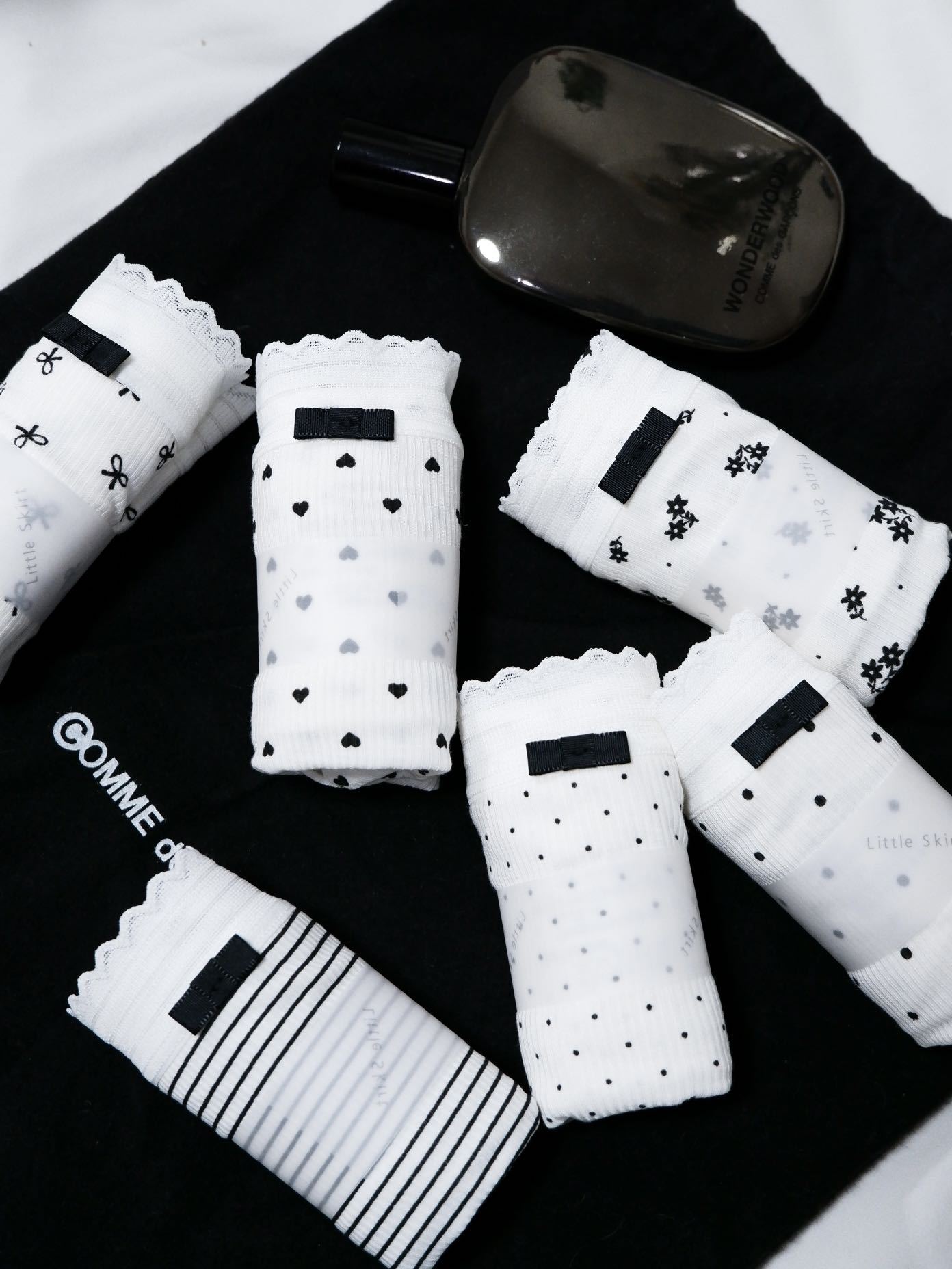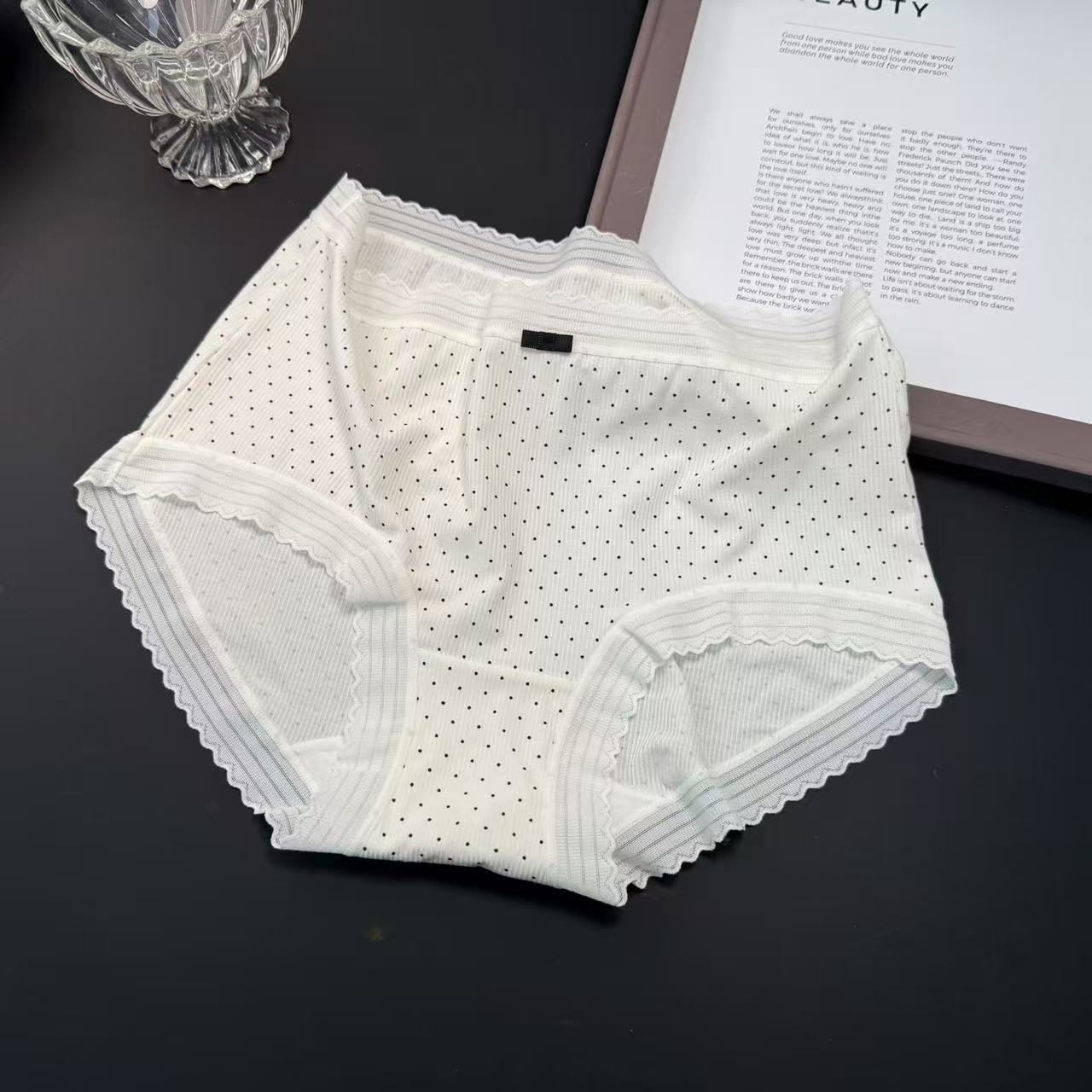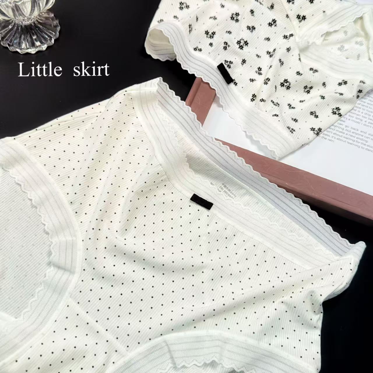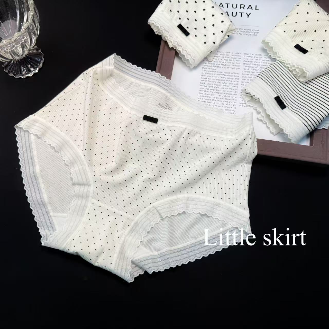 샤오란치마 Y020 흑백 프린트 시리즈 여성 속옷 80수 골지 중간 허리 라인 팬티 피부 친화적이고 통기성 좋은 삼각팬티