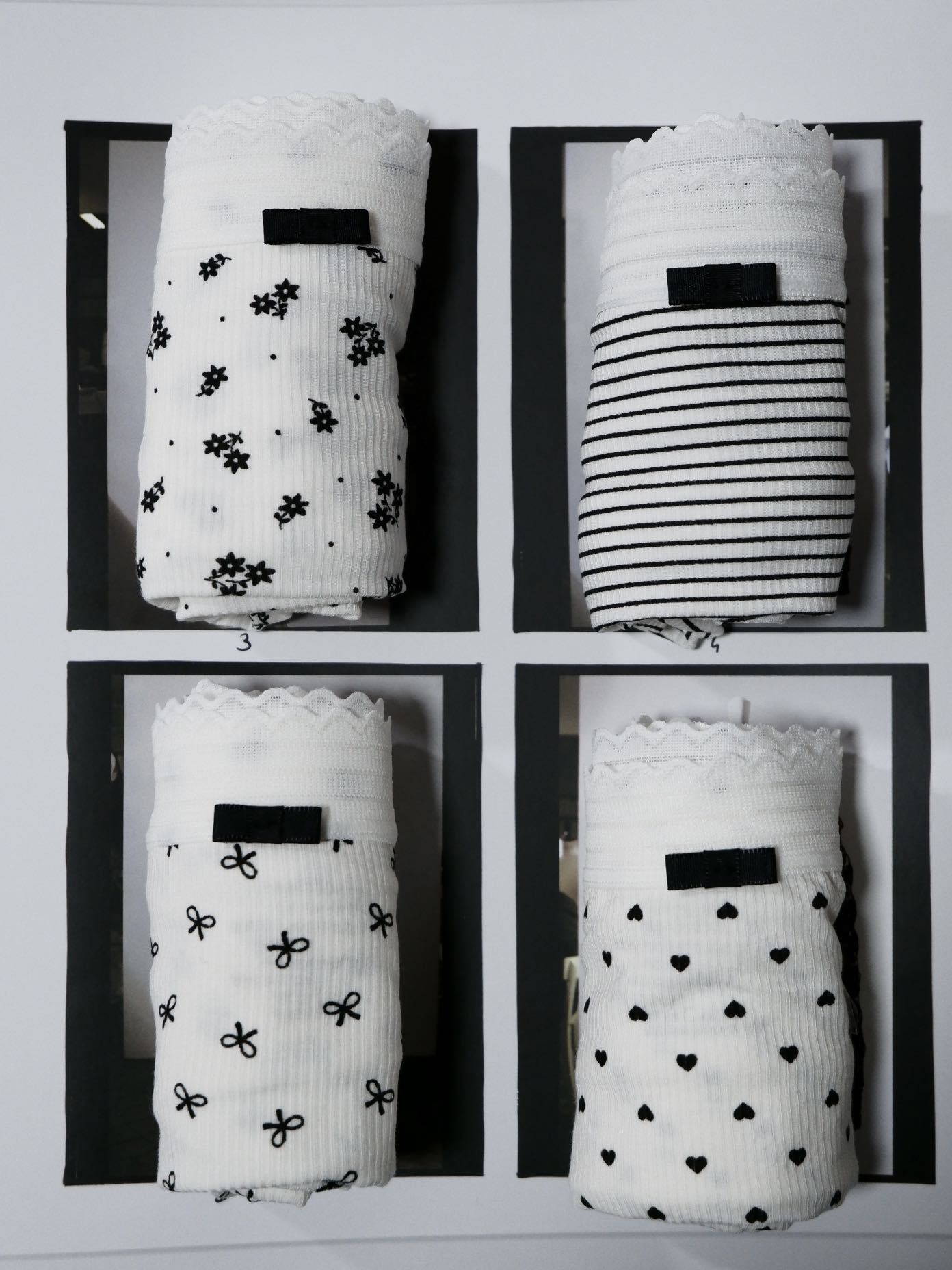 샤오란치마 Y020 흑백 프린트 시리즈 여성 속옷 80수 골지 중간 허리 라인 팬티 피부 친화적이고 통기성 좋은 삼각팬티스토어 가기